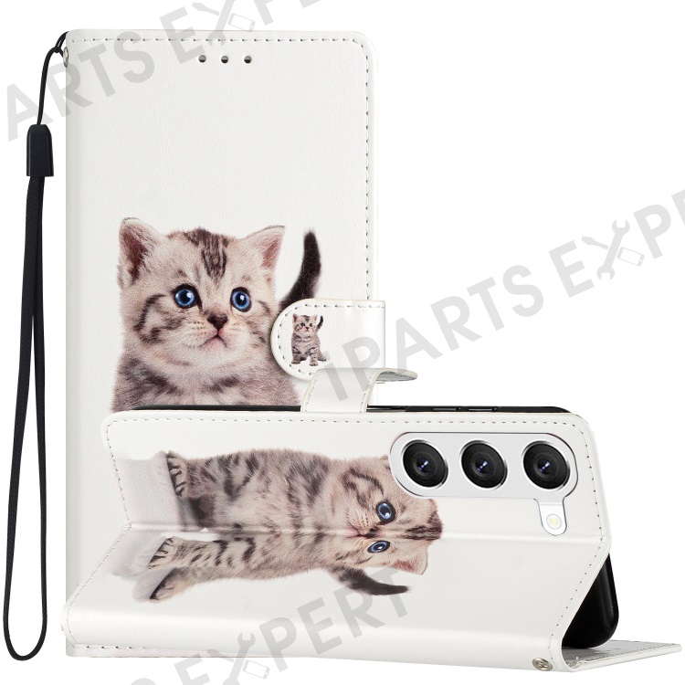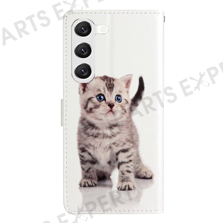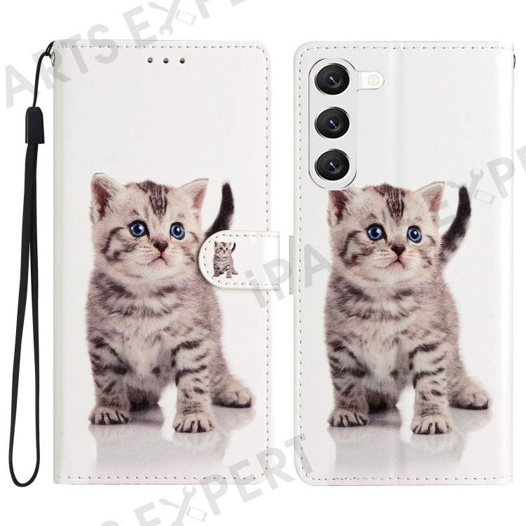 For Samsung Galaxy S23 Folding Stand Pattern Printing Phone Case PU Leather Wallet Flip Magnetic Closure Cover with Strap - Cute Cat