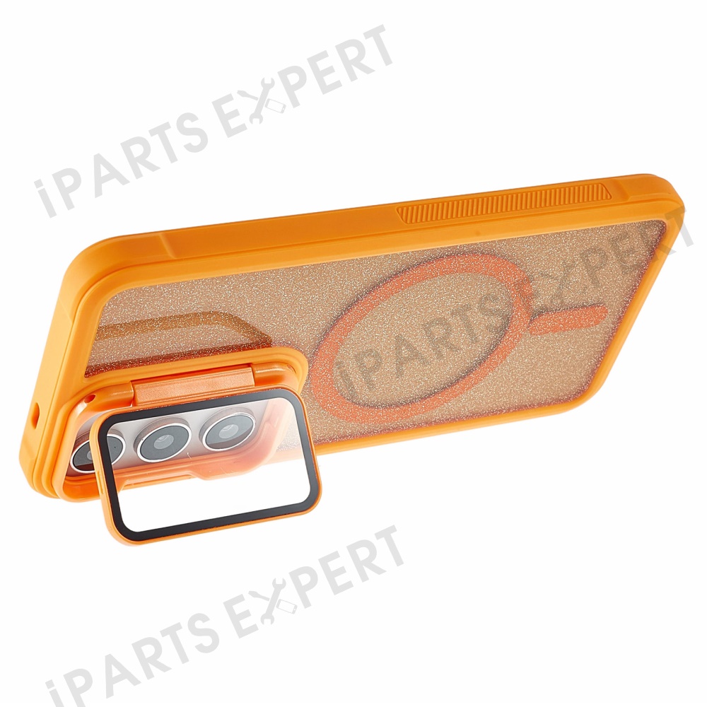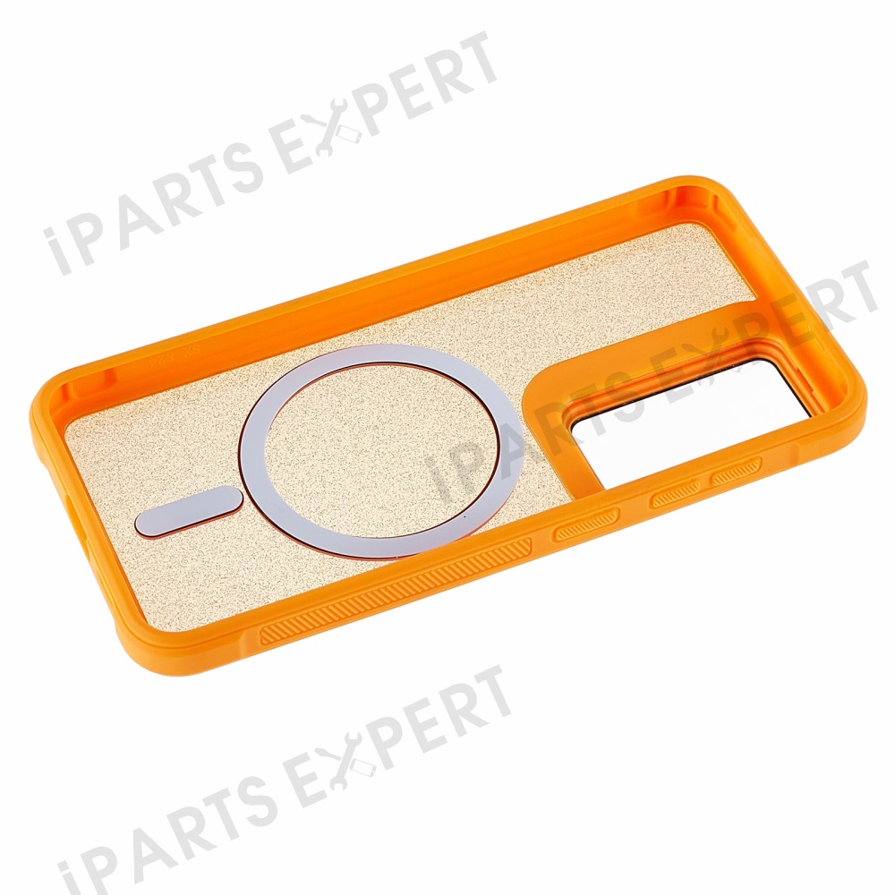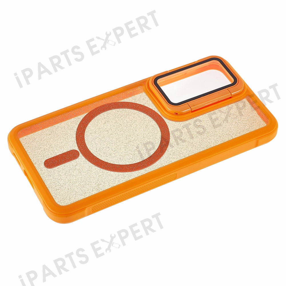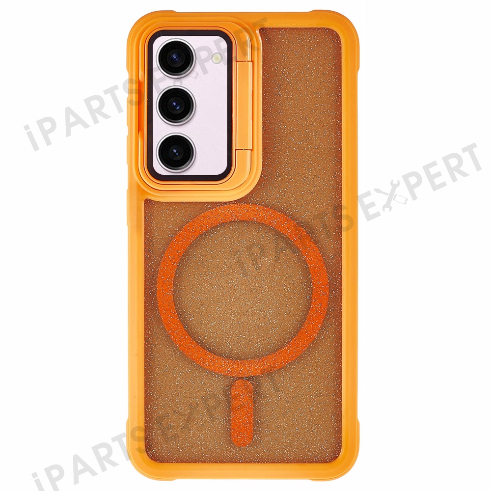 For Samsung Galaxy S23 Glitter Phone Magnetic Case Sparkling Cover with Lens Cover Kickstand - Orange