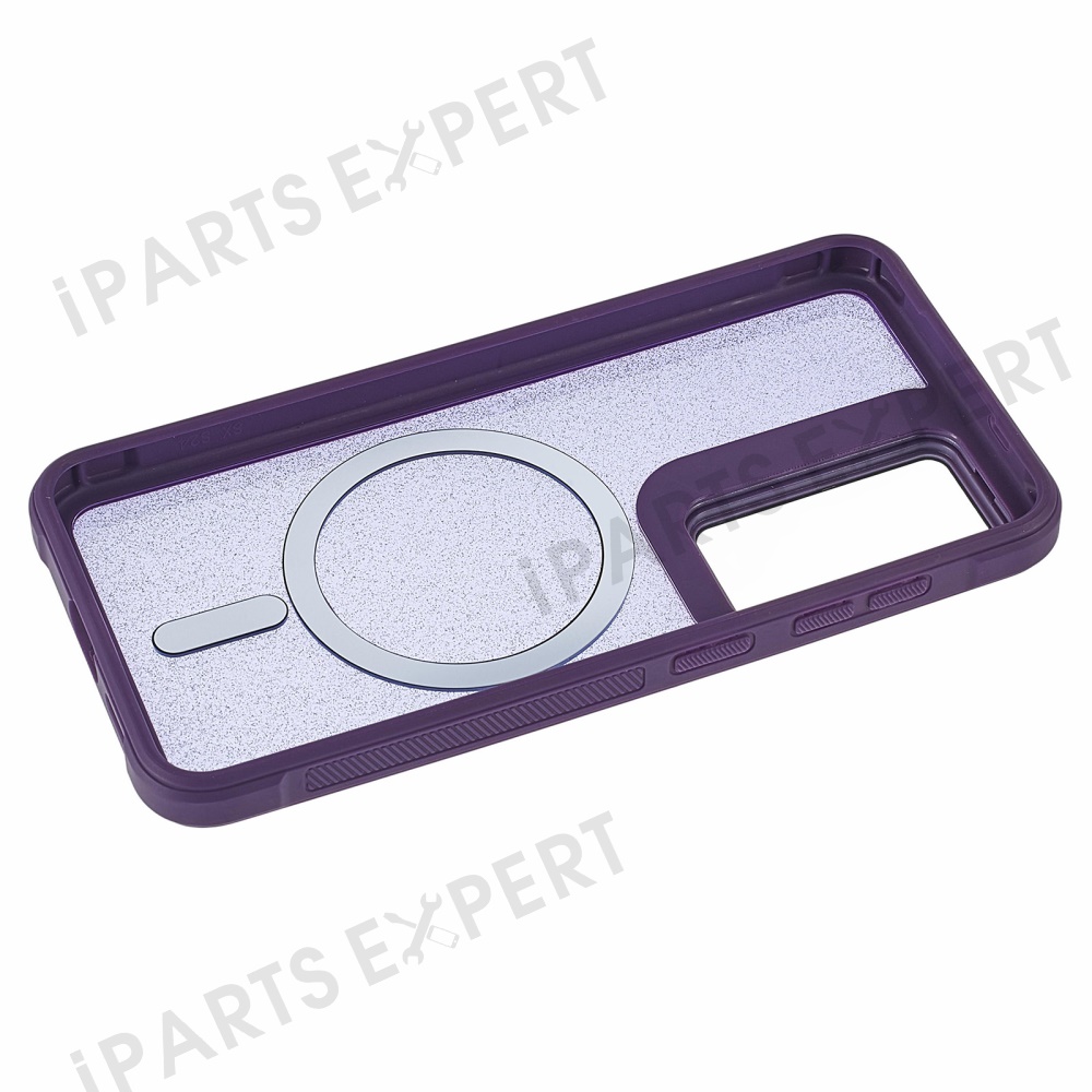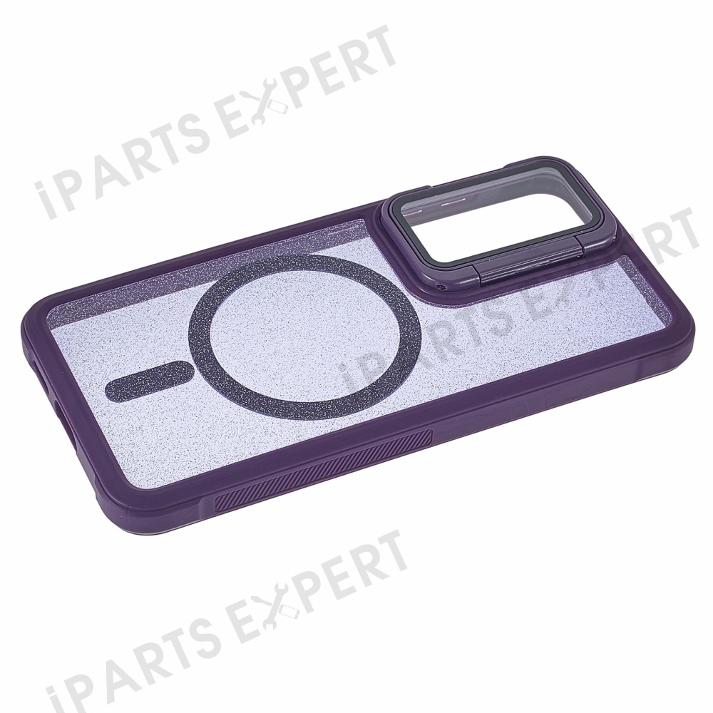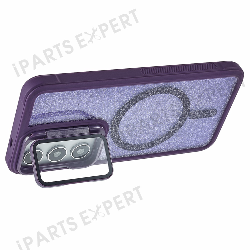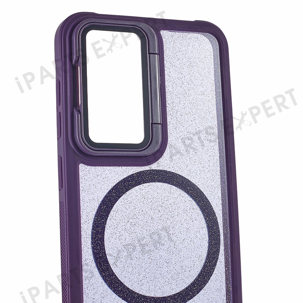For Samsung Galaxy S23 Glitter Phone Magnetic Case Sparkling Cover with Lens Cover Kickstand - Purple