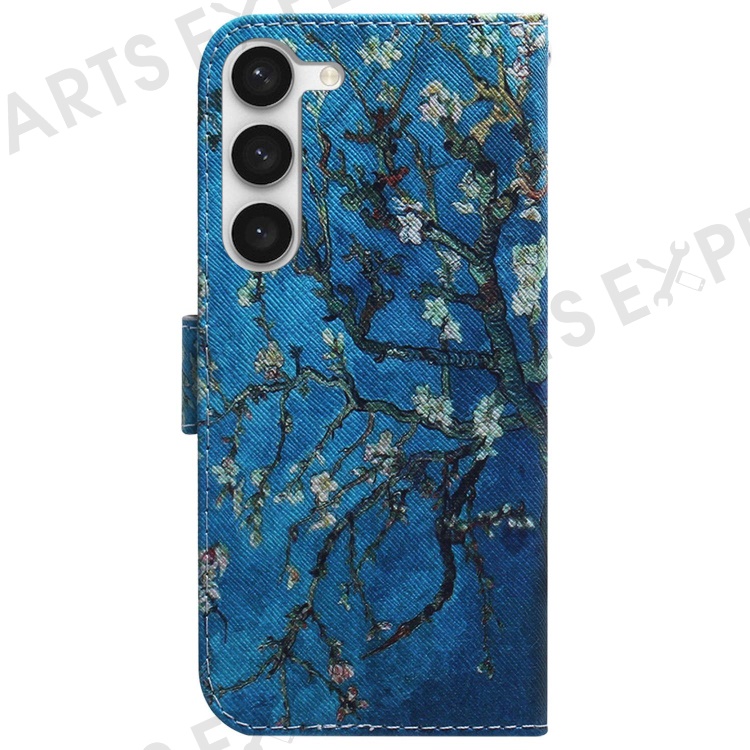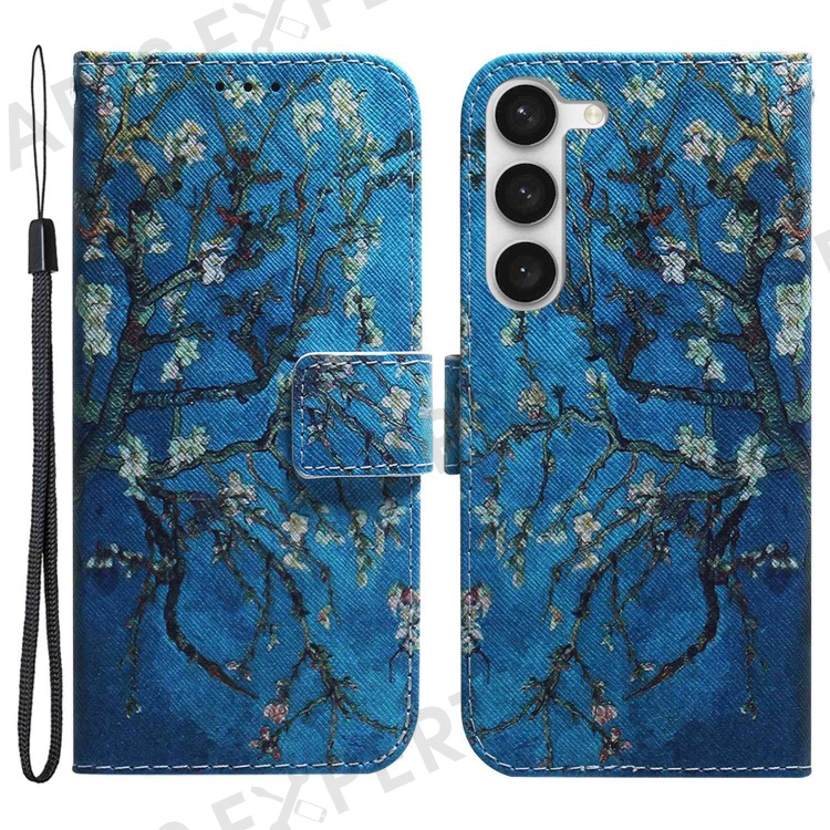 For Samsung Galaxy S23 Pattern Printing PU Leather Wallet Magnetic Cover Viewing Stand Shockproof Flip Phone Case - Apricot Flowers