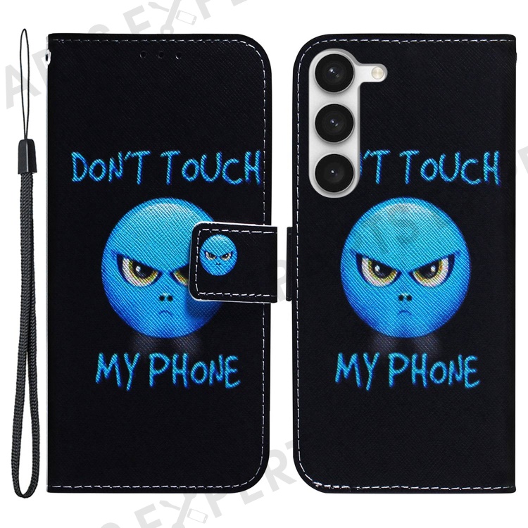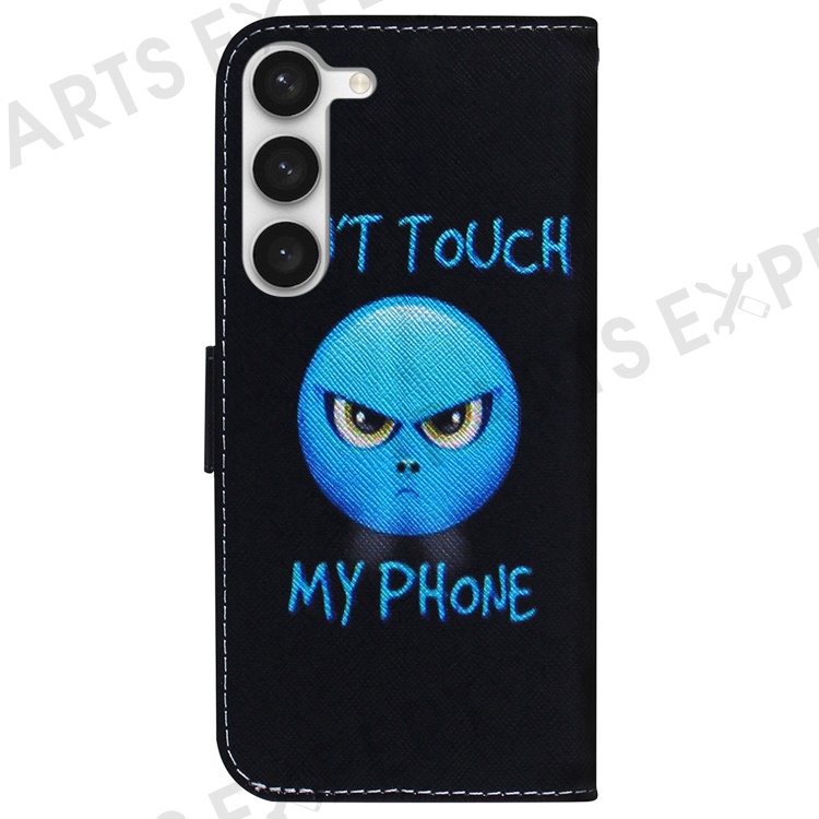 For Samsung Galaxy S23 Pattern Printing PU Leather Wallet Magnetic Cover Viewing Stand Shockproof Flip Phone Case - Don't Touch My Phone