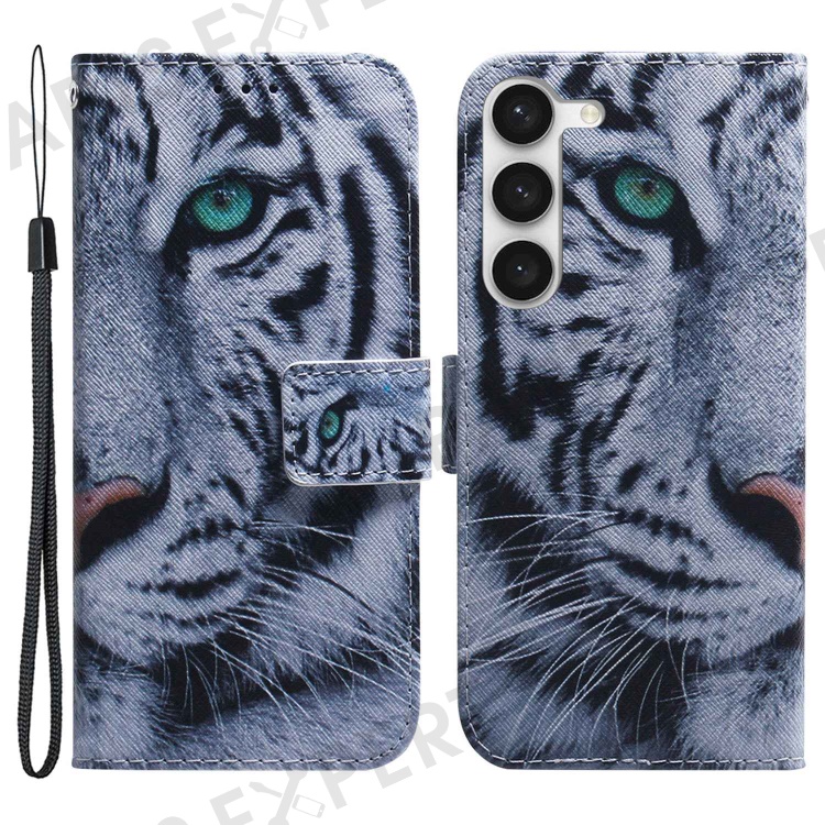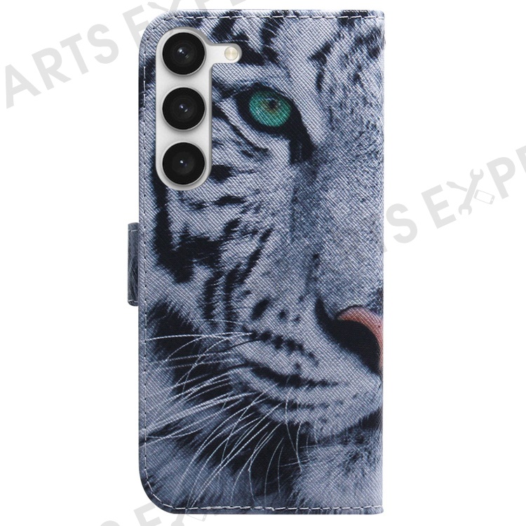 For Samsung Galaxy S23 Pattern Printing PU Leather Wallet Magnetic Cover Viewing Stand Shockproof Flip Phone Case - Tiger Head