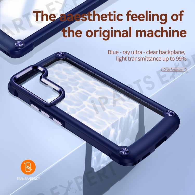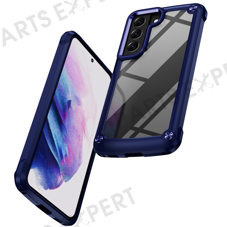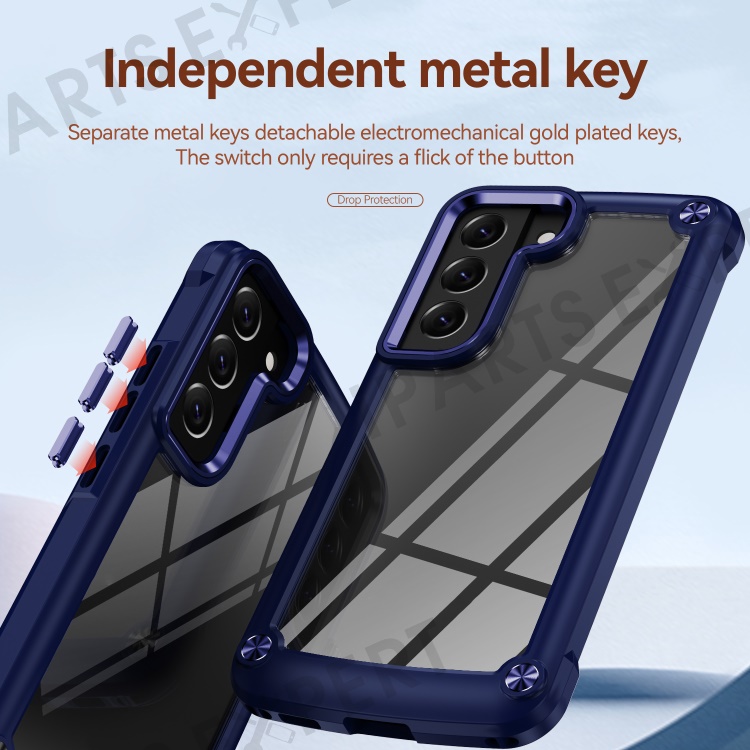 For Samsung Galaxy S23+ Metal Button Hard PC + TPU Drop-proof Cover Cellphone Anti-scratch Back Case - Blue