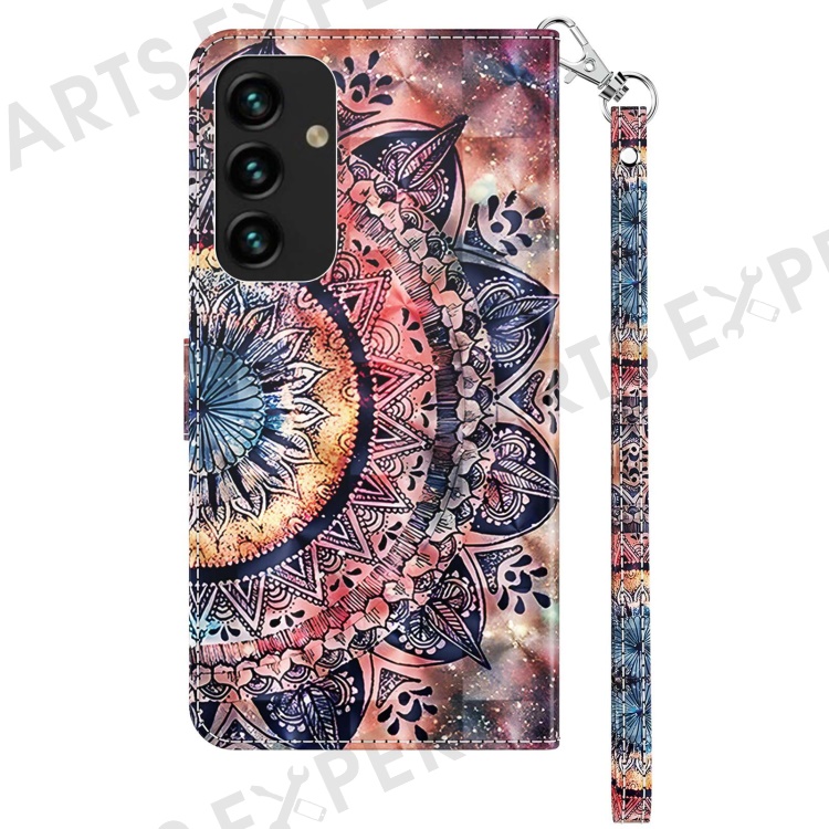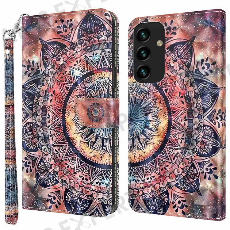 For Samsung Galaxy S23+ PU Leather 3D Pattern Printing Shockproof Case Foldable Stand Phone Wallet Cover with Wrist Strap - Color Mandala