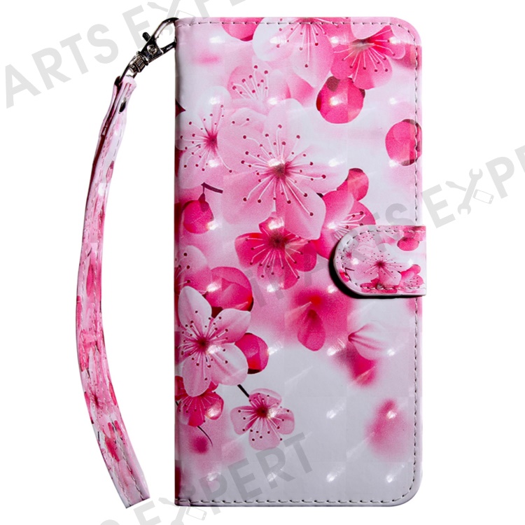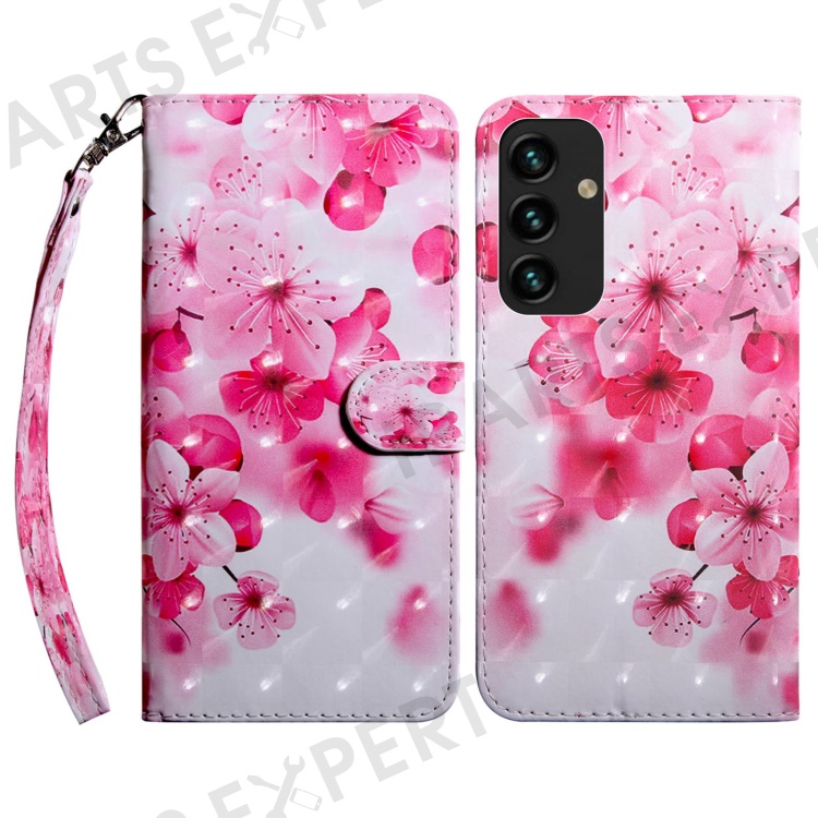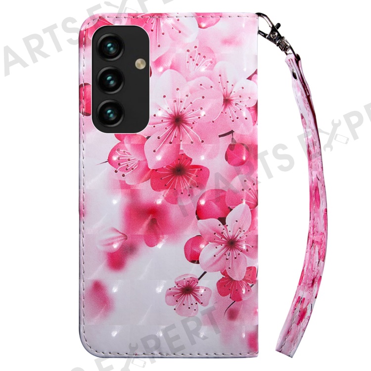 For Samsung Galaxy S23+ PU Leather 3D Pattern Printing Shockproof Case Foldable Stand Phone Wallet Cover with Wrist Strap - Red Flower