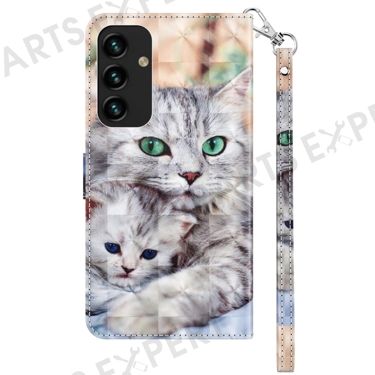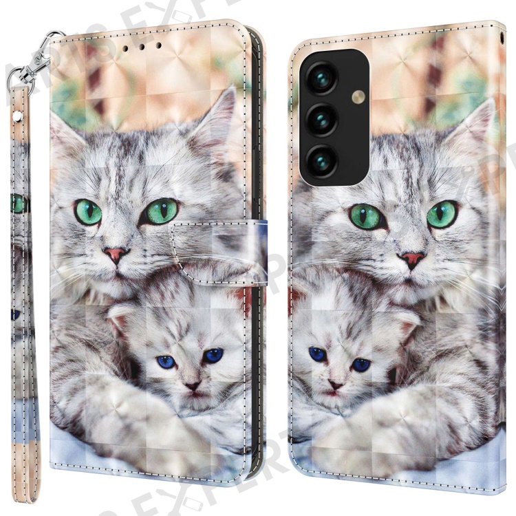 For Samsung Galaxy S23+ PU Leather 3D Pattern Printing Shockproof Case Foldable Stand Phone Wallet Cover with Wrist Strap - Two Cats