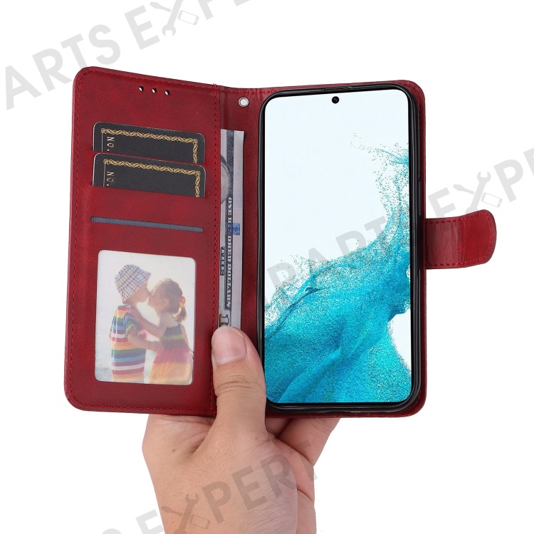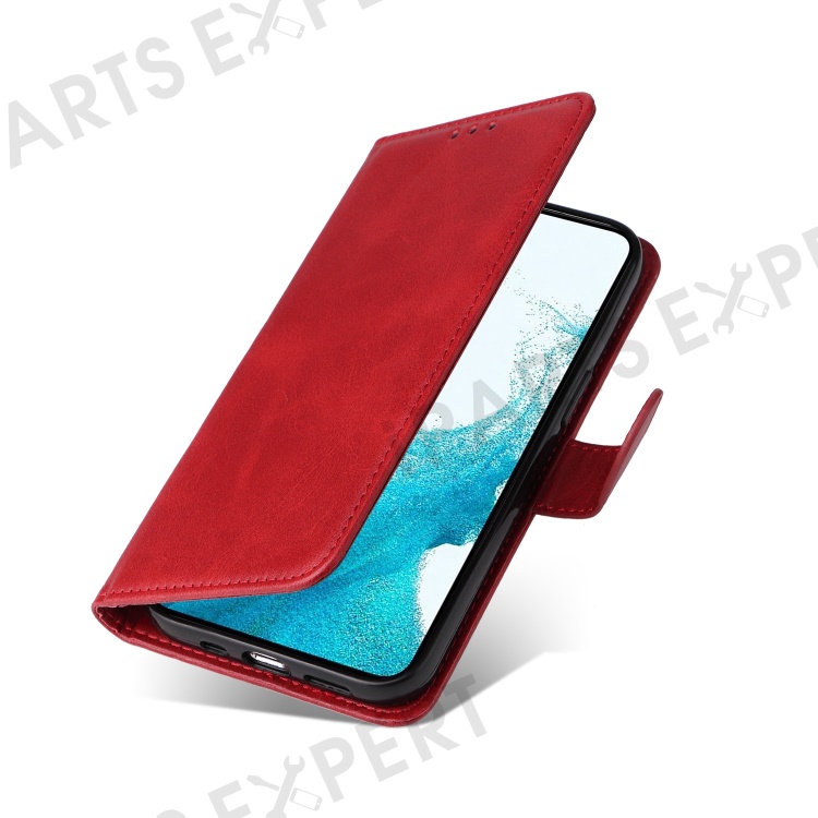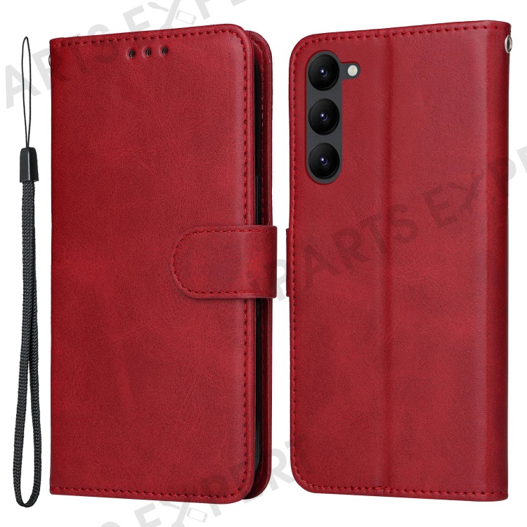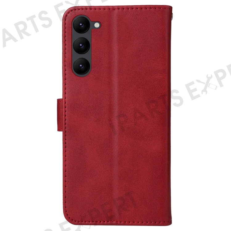 For Samsung Galaxy S23+ Calf Texture Shockproof PU Leather Case Magnetic Clasp Wallet Stand Phone Cover - Red