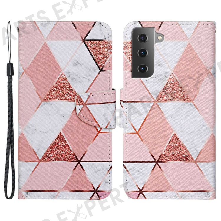 For Samsung Galaxy S23+ Cross Texture PU Leather Shockproof Phone Case Pattern Printing Wallet Stand Folio Flip Cover - Marble Pattern
