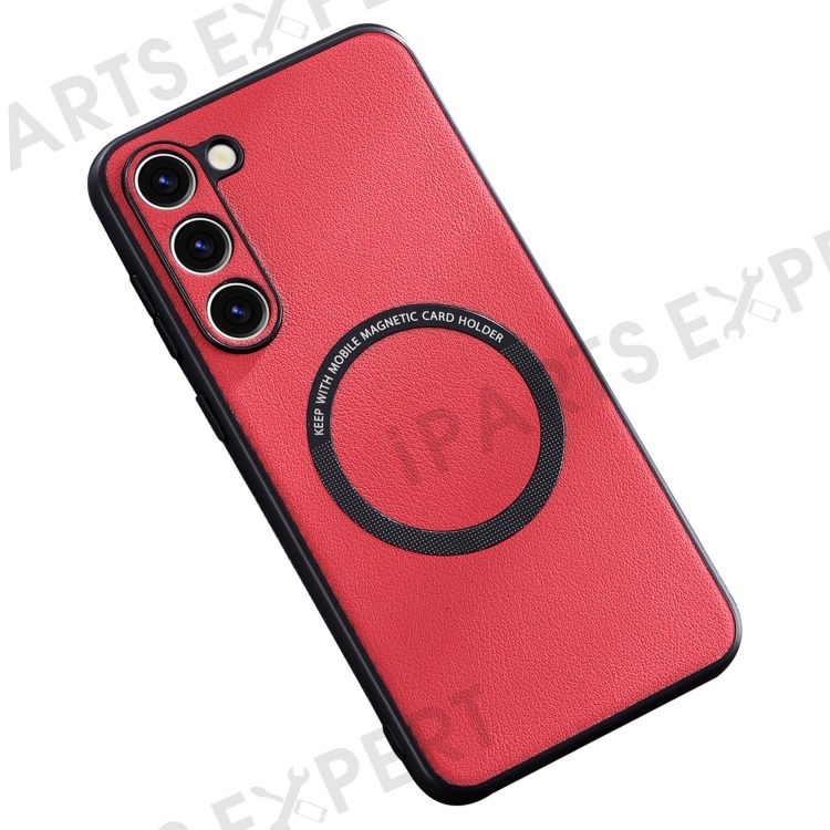 For Samsung Galaxy S23 PU Leather Coated TPU+PC Case Phone Back Cover Magnetic Case - Red