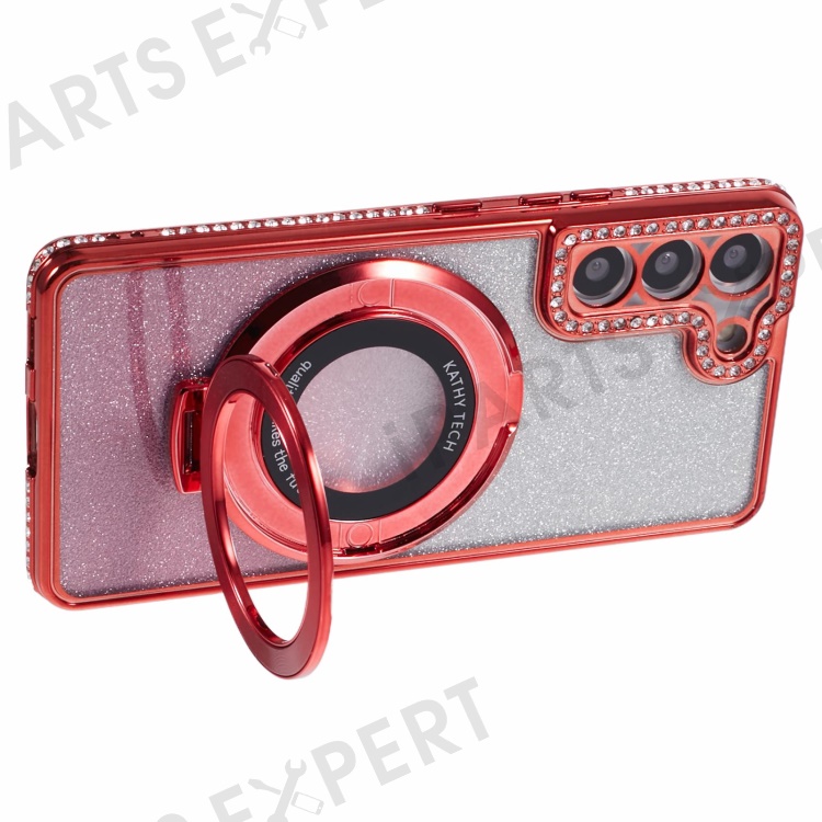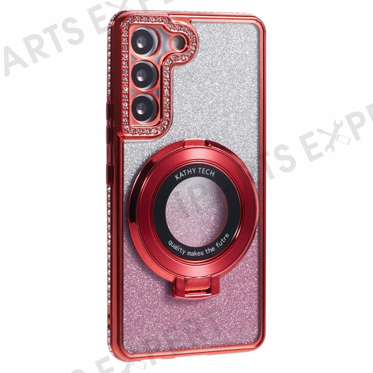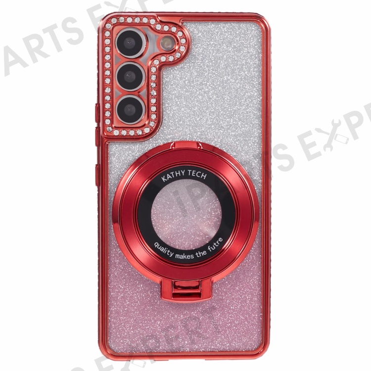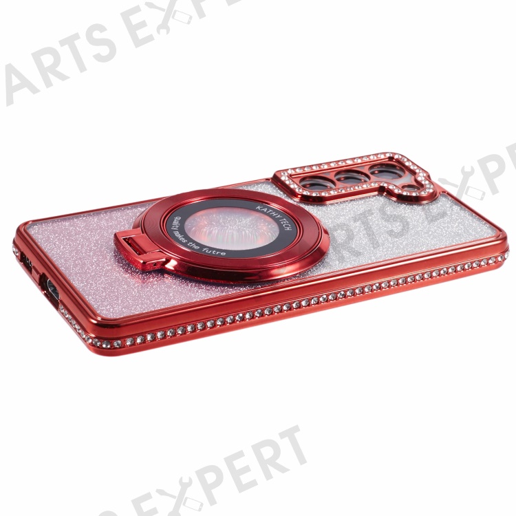 For Samsung Galaxy S23+ TPU Case Gradient Rhinestone Ornament Cover with PC Ring kickstand - Red