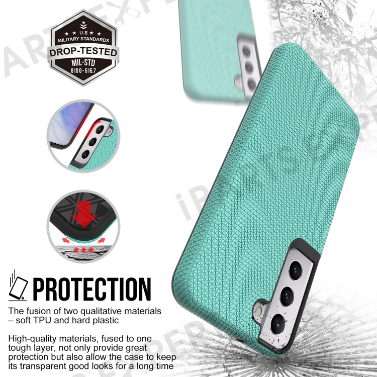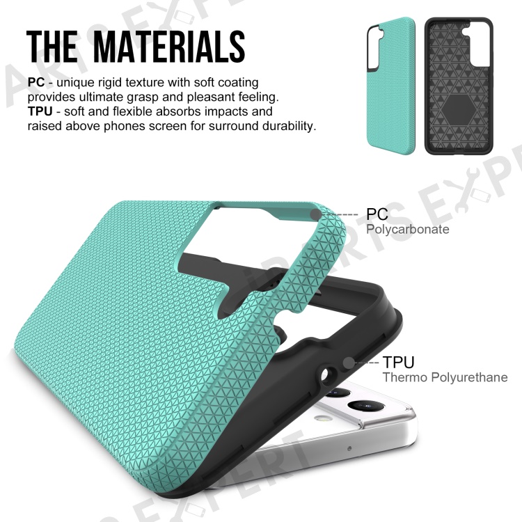 For Samsung Galaxy S23 Triangle Military Grade Drop-proof TPU+PC Hybrid Case Scratch Proof Phone Back Cover - Mint Green