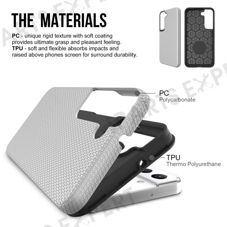 For Samsung Galaxy S23 Triangle Military Grade Drop-proof TPU+PC Hybrid Case Scratch Proof Phone Back Cover - Silver