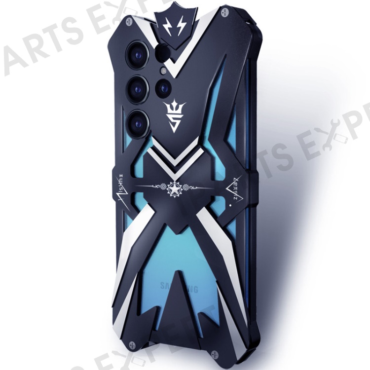 For Samsung Galaxy S23 Ultra Armor Phone Case Aluminum Alloy Drop Protection Cover - Black