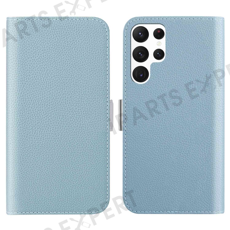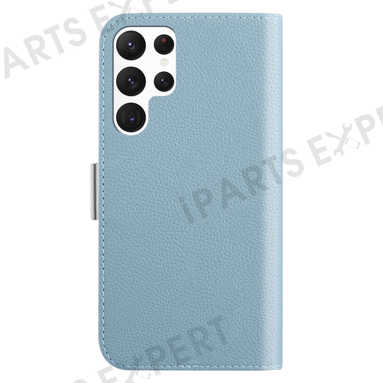 For Samsung Galaxy S23 Ultra Candy Color PU Leather Phone Drop-proof Case Litchi Texture Flip Stand Wallet Cover - Baby Blue