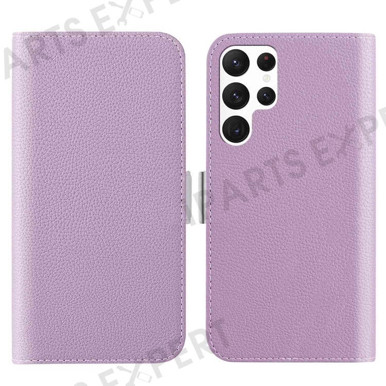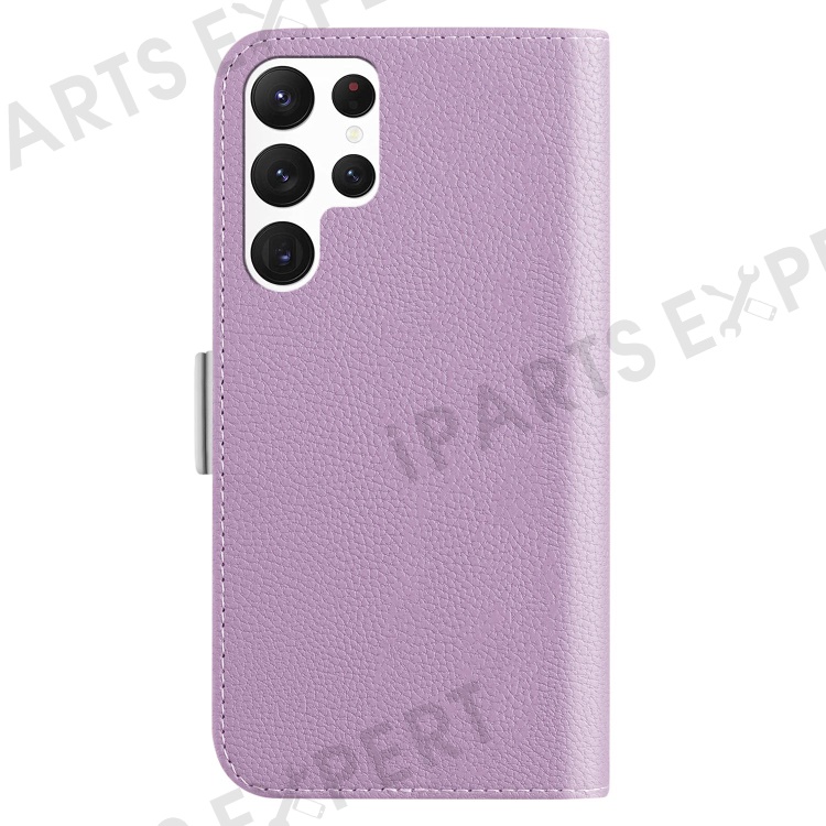 For Samsung Galaxy S23 Ultra Candy Color PU Leather Phone Drop-proof Case Litchi Texture Flip Stand Wallet Cover - Light Purple