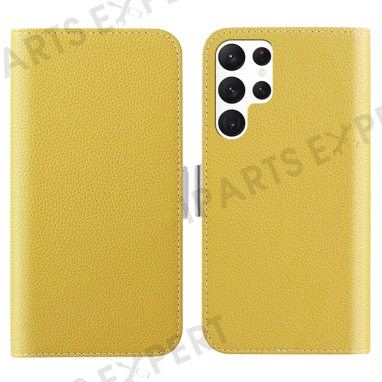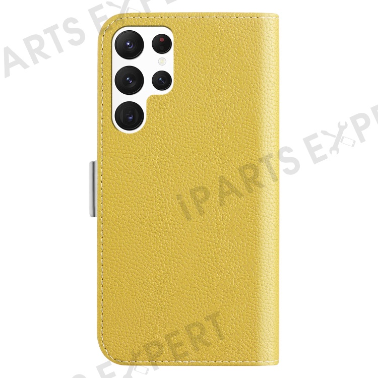 For Samsung Galaxy S23 Ultra Candy Color PU Leather Phone Drop-proof Case Litchi Texture Flip Stand Wallet Cover - Yellow