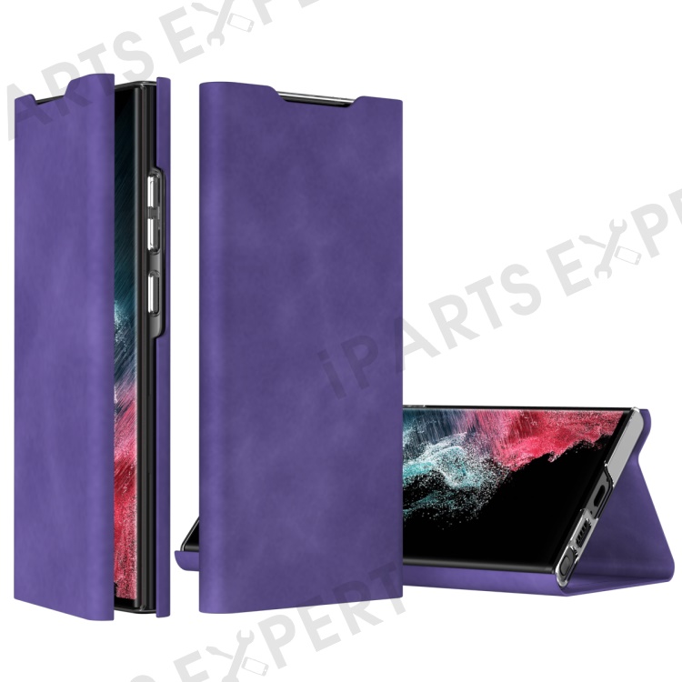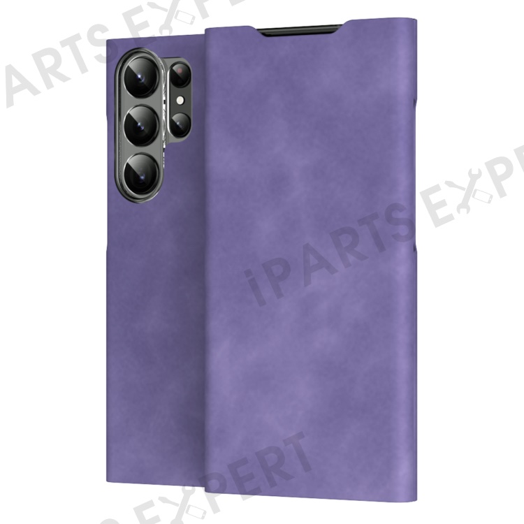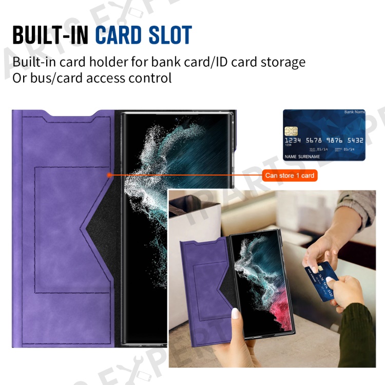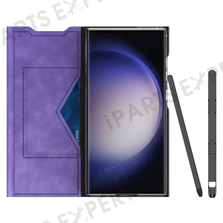 For Samsung Galaxy S23 Ultra Card Holder PU Leather + PC Phone Case Nappa Texture Stand Cover - Purple