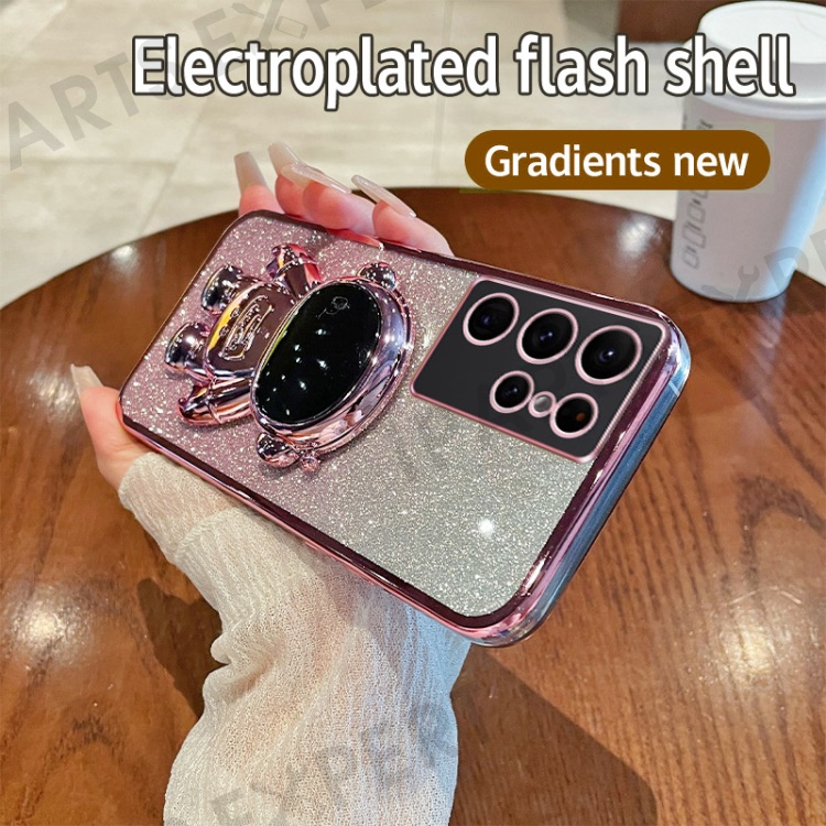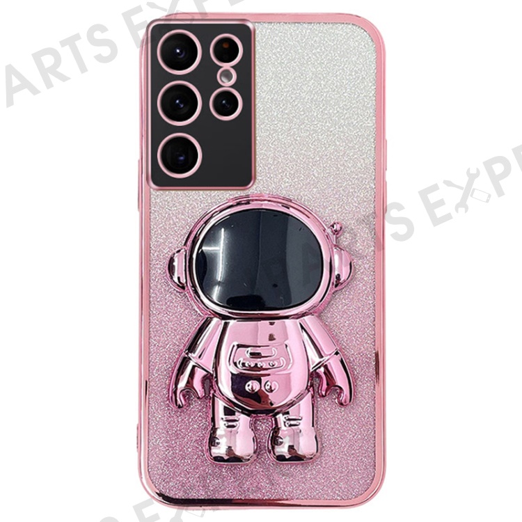 For Samsung Galaxy S23 Ultra Case Astronaut Kickstand Electroplating Glitter Cover - Pink