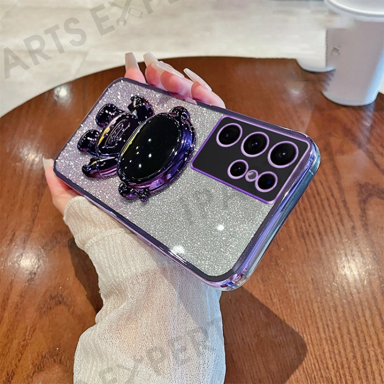 For Samsung Galaxy S23 Ultra Case Astronaut Kickstand Electroplating Glitter Cover - Purple