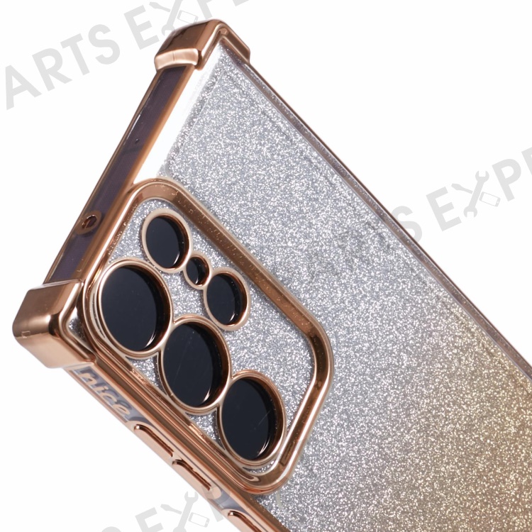 For Samsung Galaxy S23 Ultra Case Glitter Gradient Electroplating TPU Phone Cover - Gold