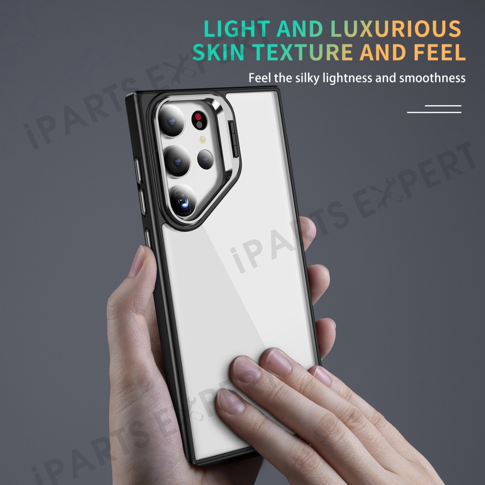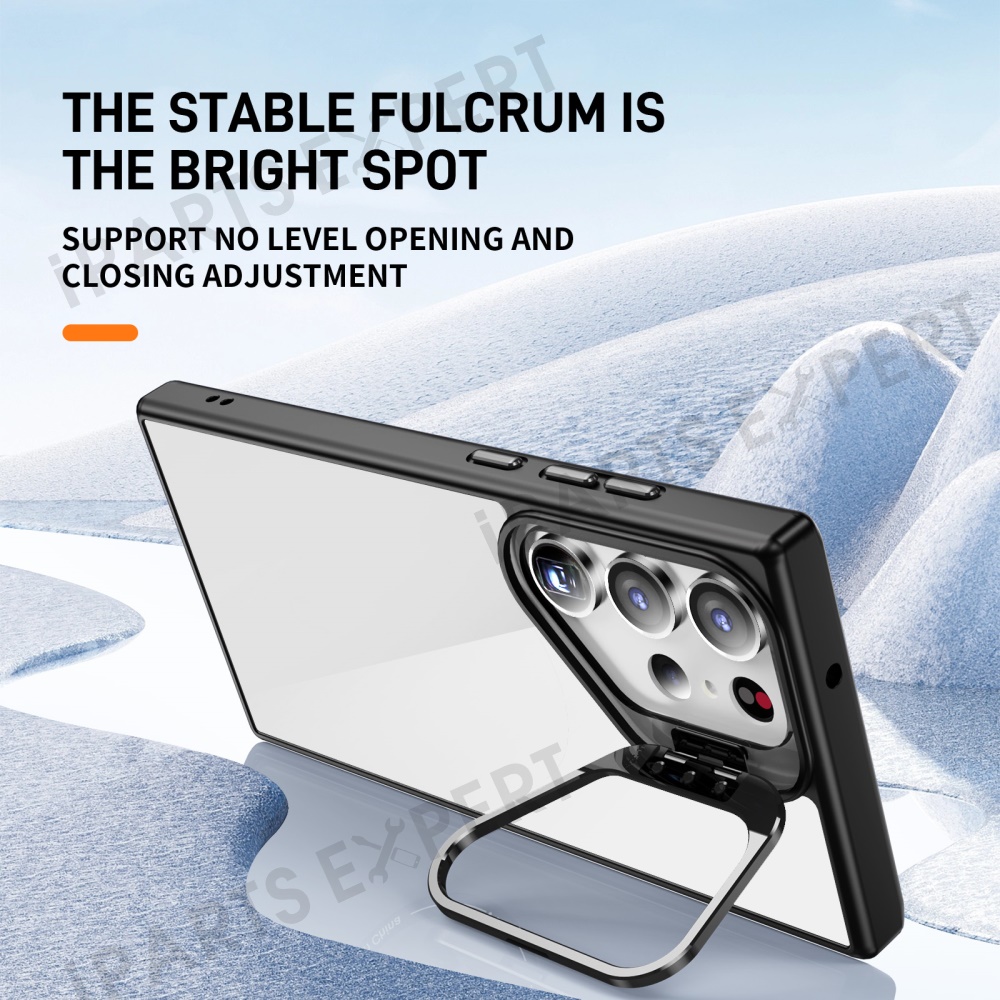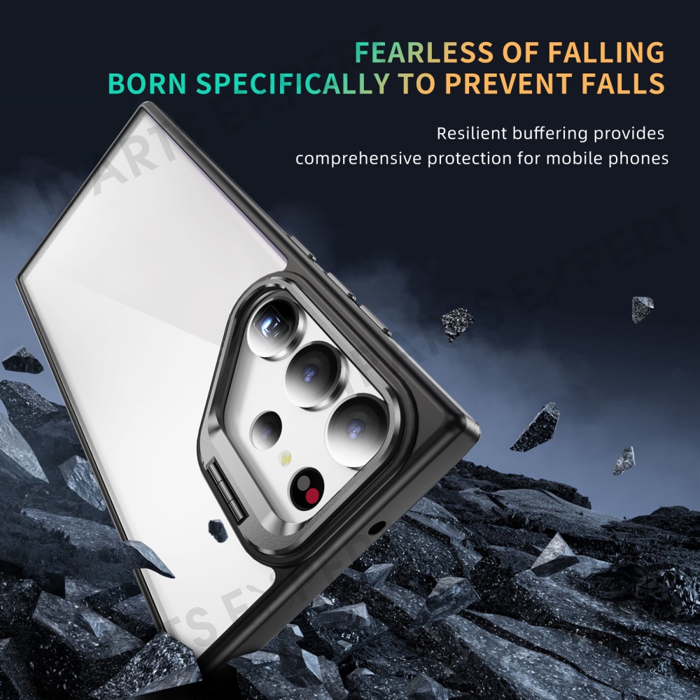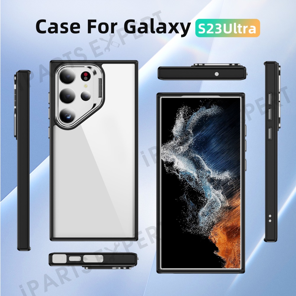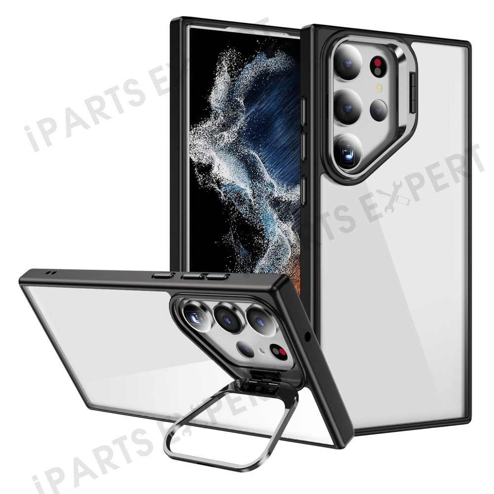 For Samsung Galaxy S23 Ultra Case Lens Frame Kickstand TPU + Acrylic Protective Phone Cover - Black