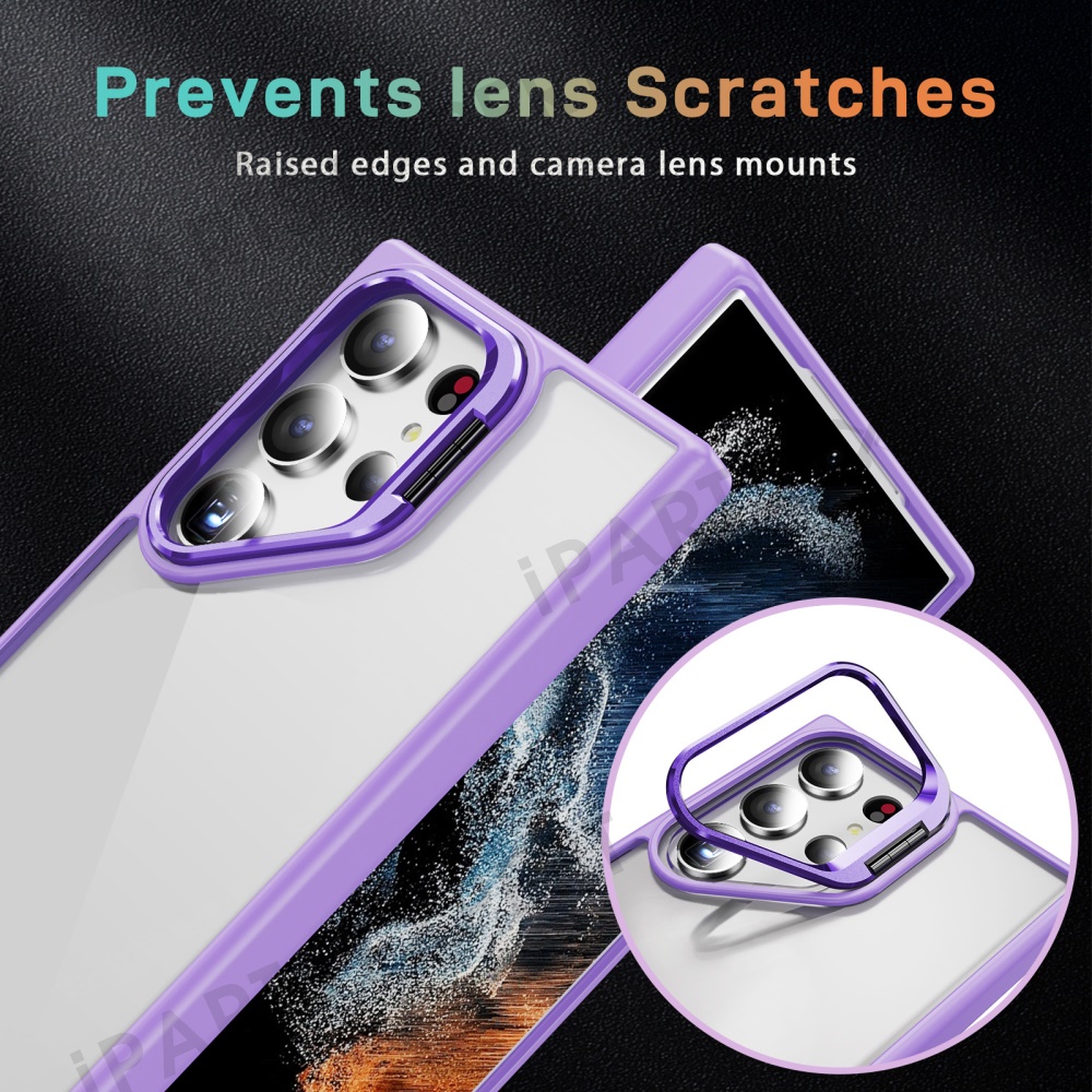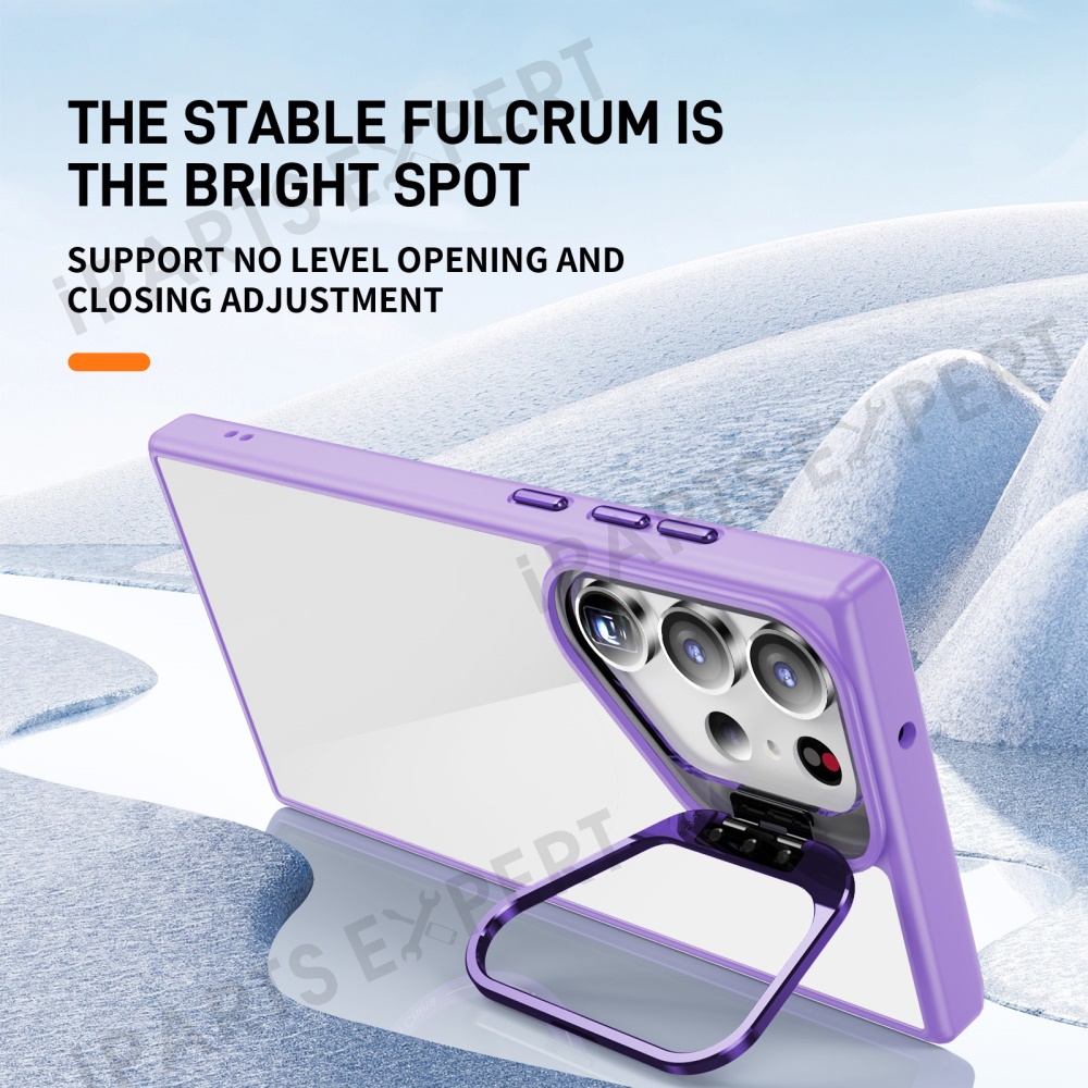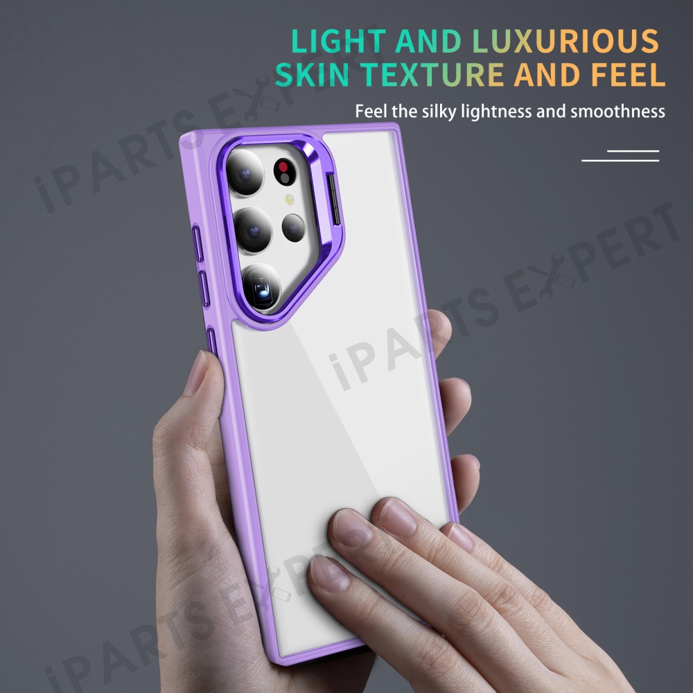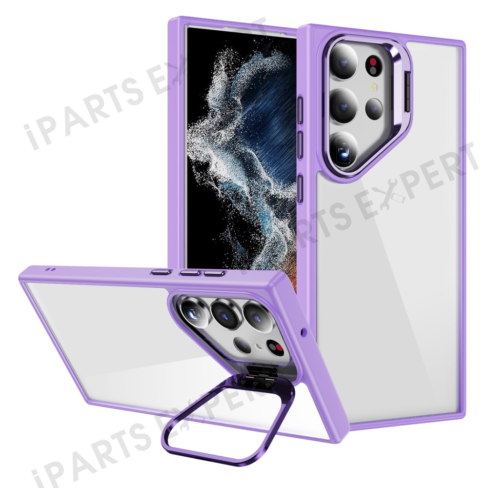 For Samsung Galaxy S23 Ultra Case Lens Frame Kickstand TPU + Acrylic Protective Phone Cover - Light Purple