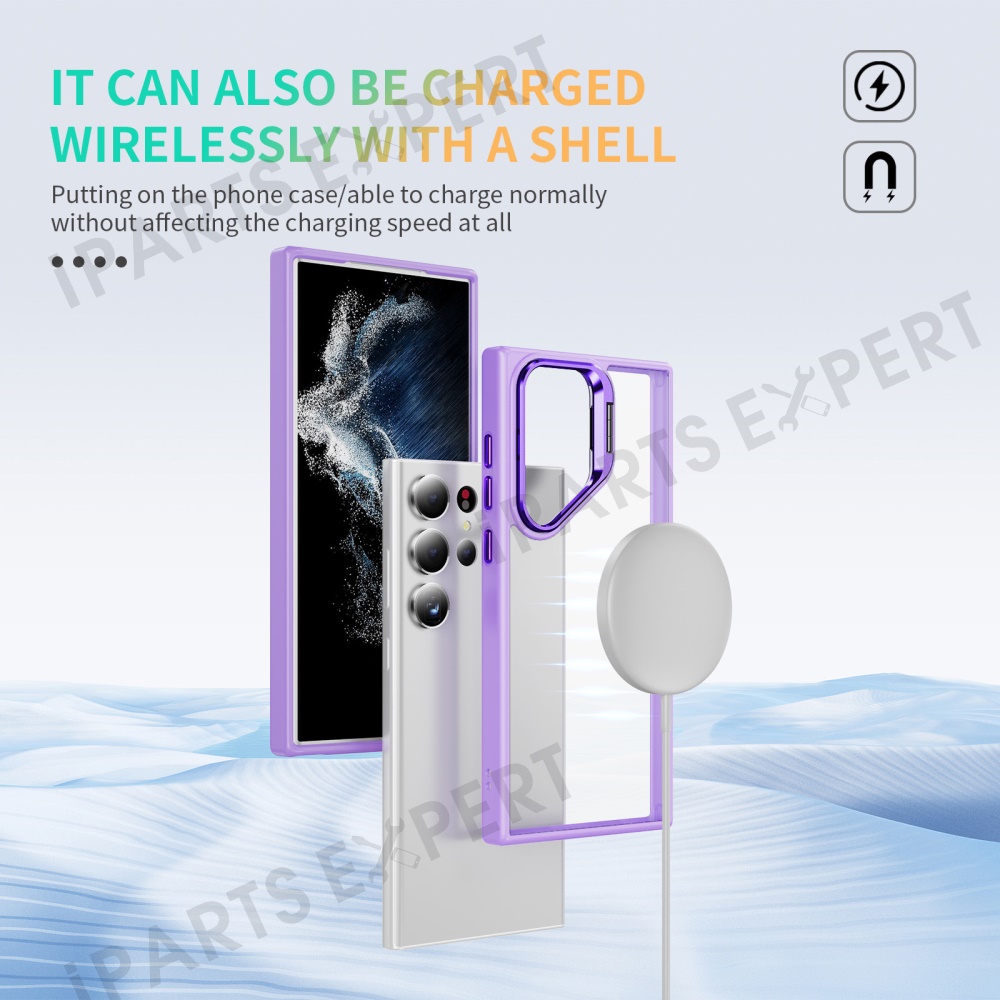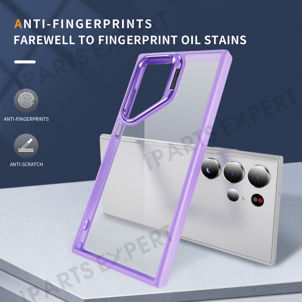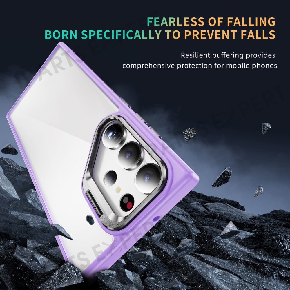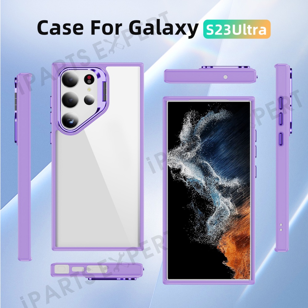 For Samsung Galaxy S23 Ultra Case Lens Frame Kickstand TPU + Acrylic Protective Phone Cover - Light Purple