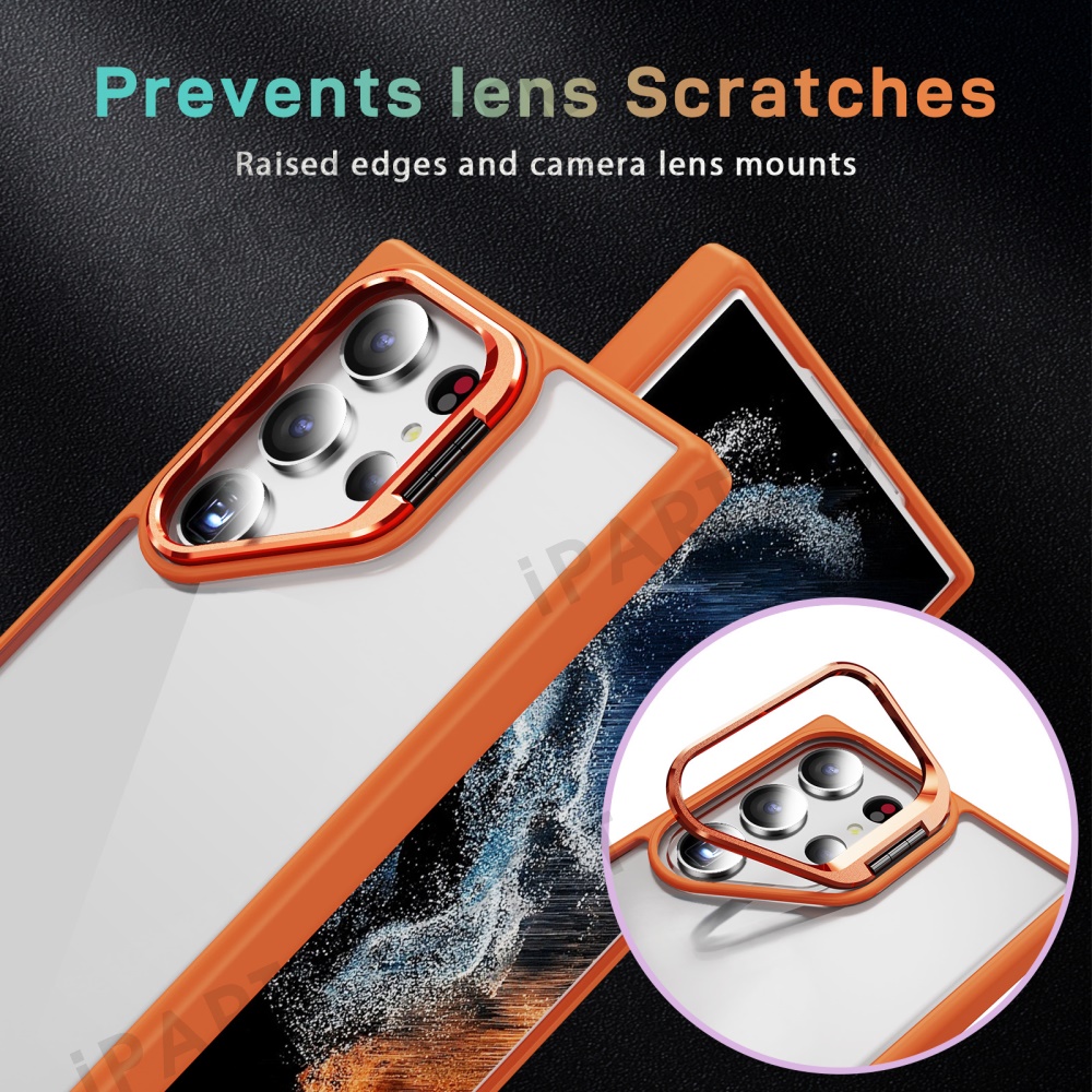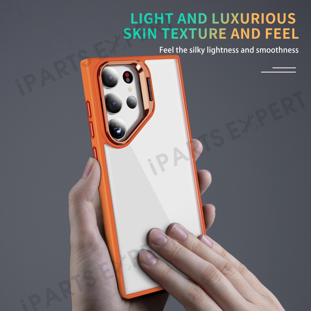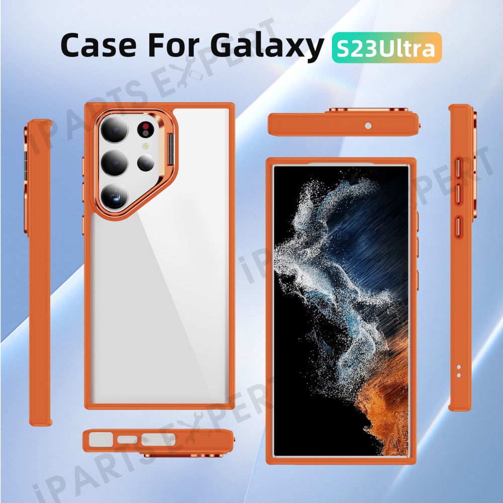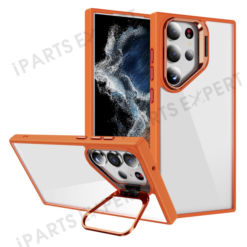 For Samsung Galaxy S23 Ultra Case Lens Frame Kickstand TPU + Acrylic Protective Phone Cover - Orange