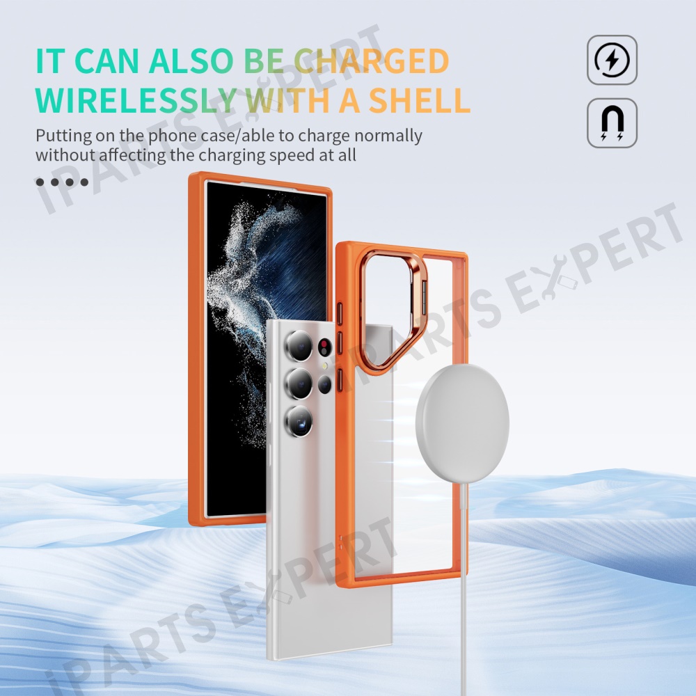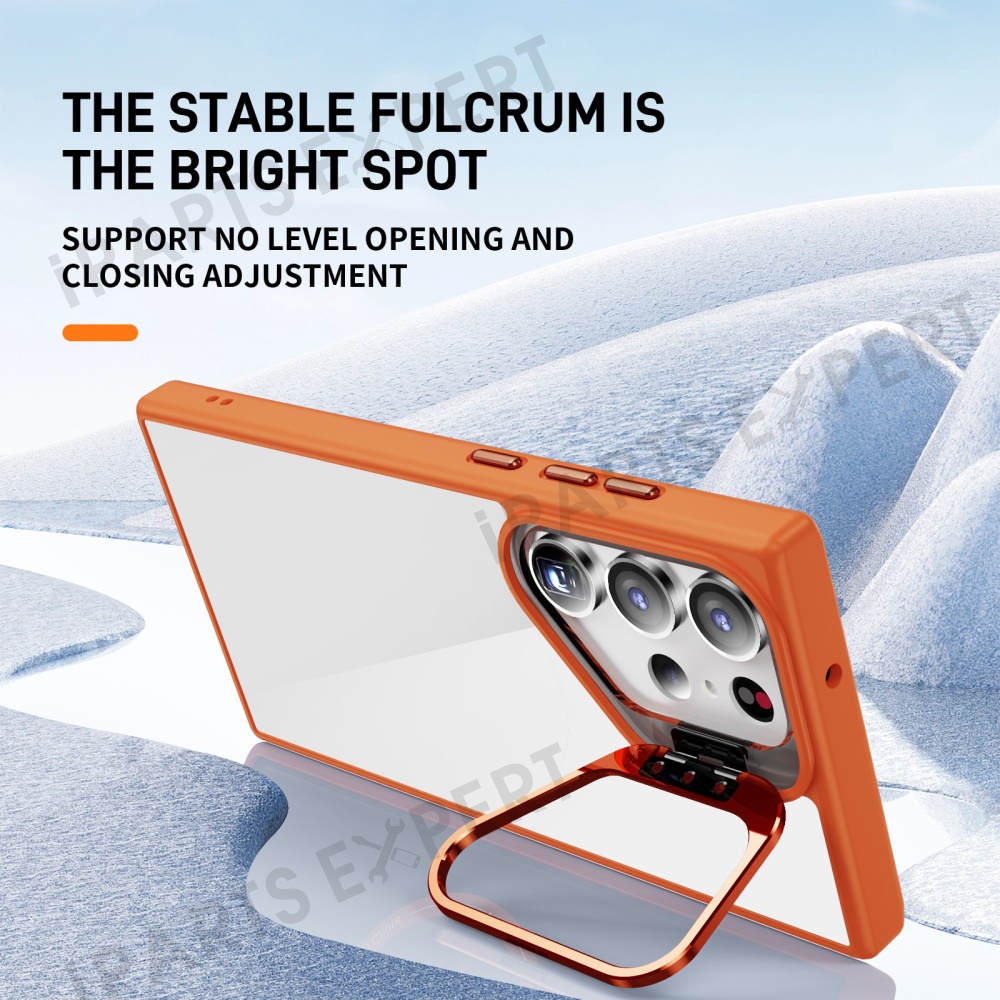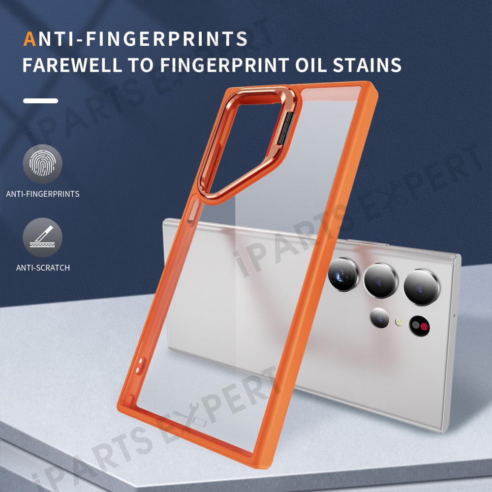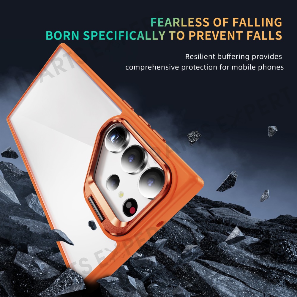 For Samsung Galaxy S23 Ultra Case Lens Frame Kickstand TPU + Acrylic Protective Phone Cover - Orange