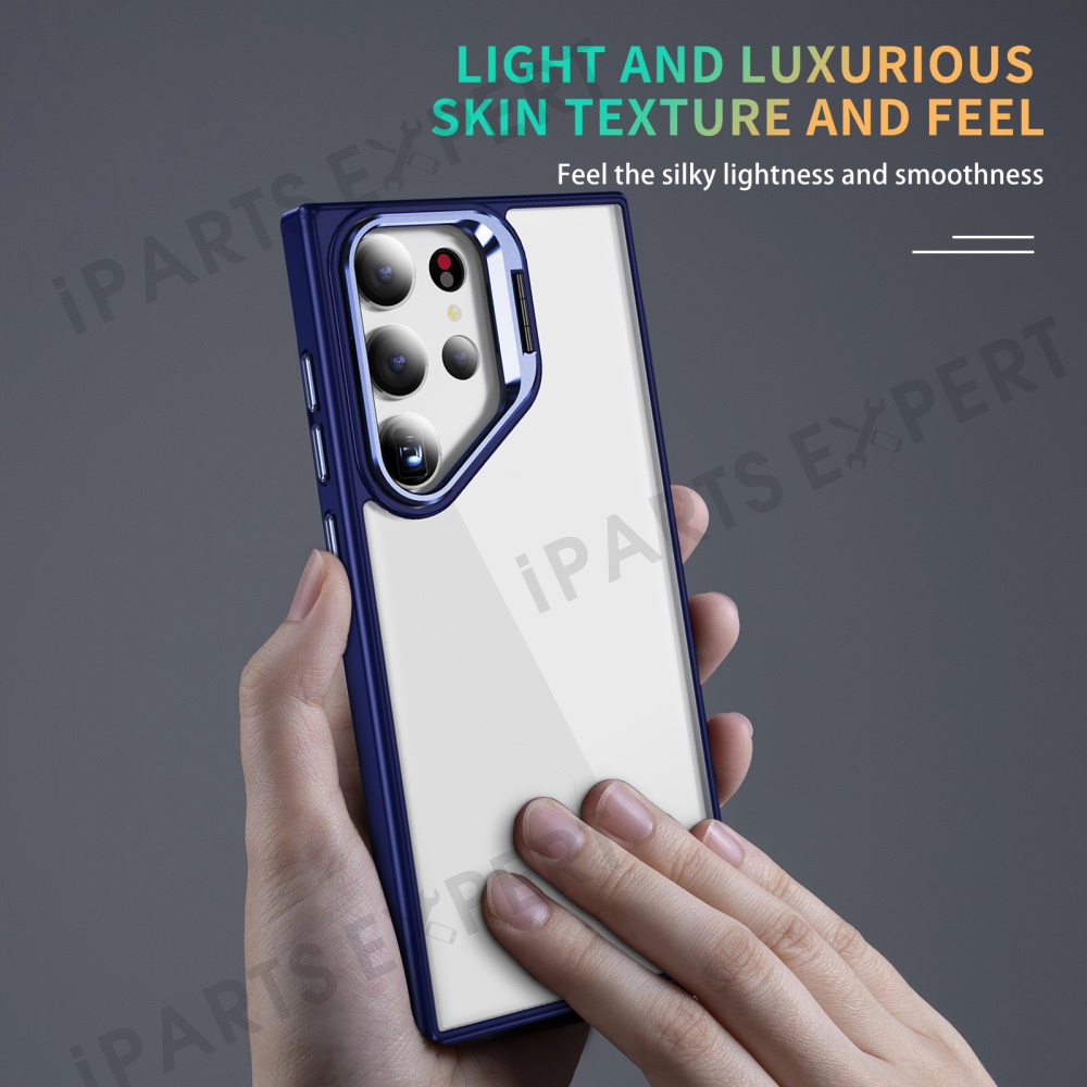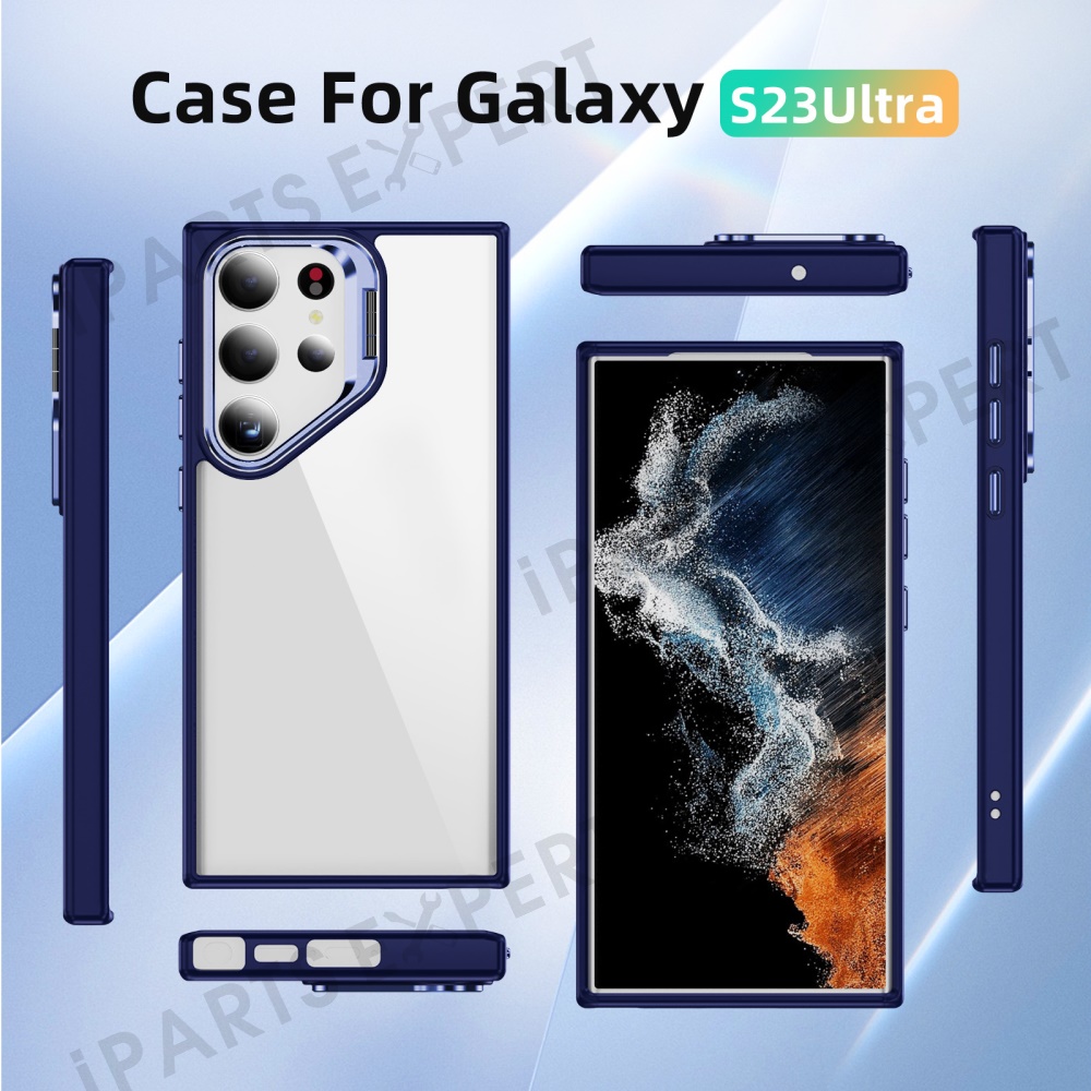 For Samsung Galaxy S23 Ultra Case Lens Frame Kickstand TPU + Acrylic Protective Phone Cover - Sapphire