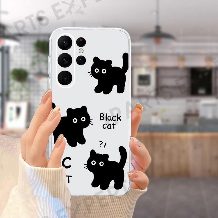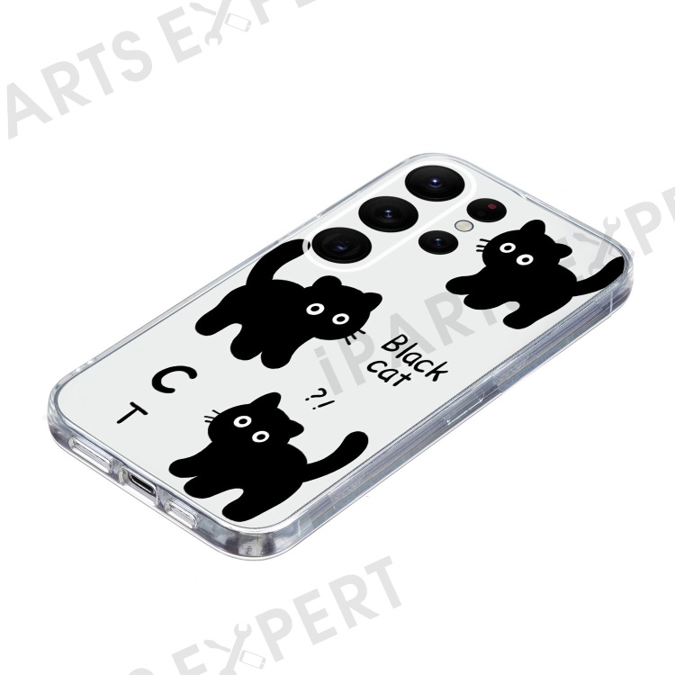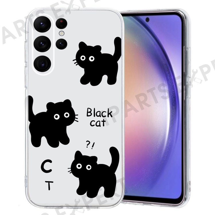 For Samsung Galaxy S23 Ultra Case Pattern Print TPU Phone Cover Precise Lens Protection - Black Cat
