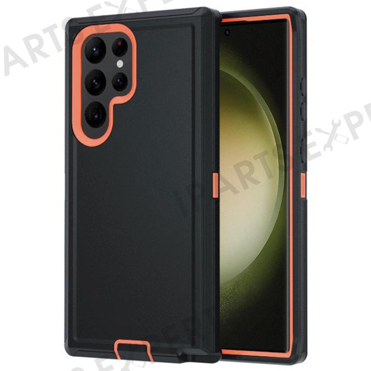 For Samsung Galaxy S23 Ultra Cell Phone Case Detachable PC+TPU Drop-proof Cover - Black+Orange