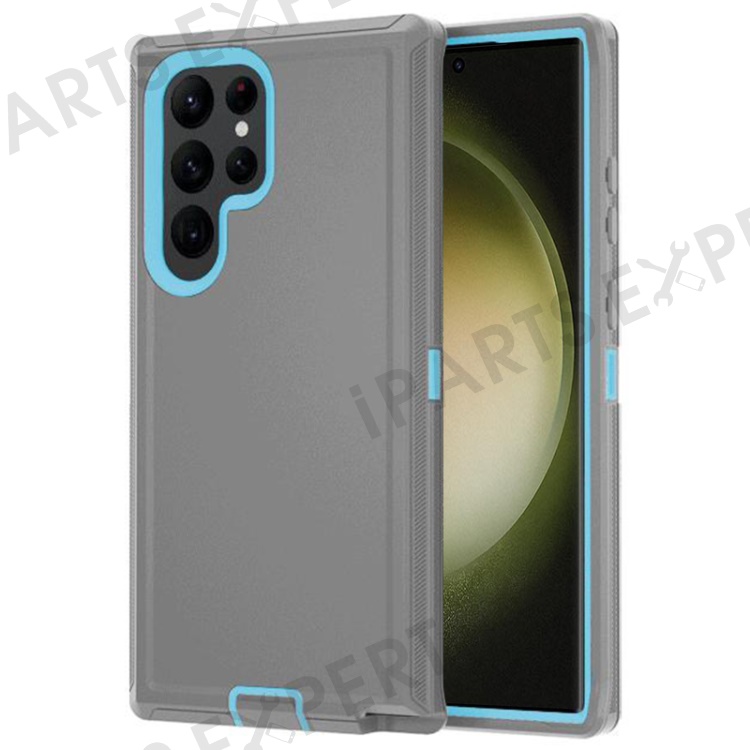 For Samsung Galaxy S23 Ultra Cell Phone Case Detachable PC+TPU Drop-proof Cover - Grey+Sky Blue