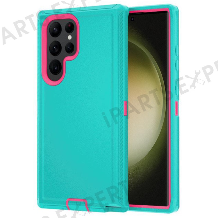 For Samsung Galaxy S23 Ultra Cell Phone Case Detachable PC+TPU Drop-proof Cover - Water Blue+Rose
