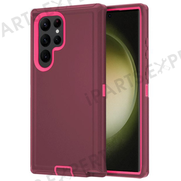 For Samsung Galaxy S23 Ultra Cell Phone Case Detachable PC+TPU Drop-proof Cover - Wine Red+Rose