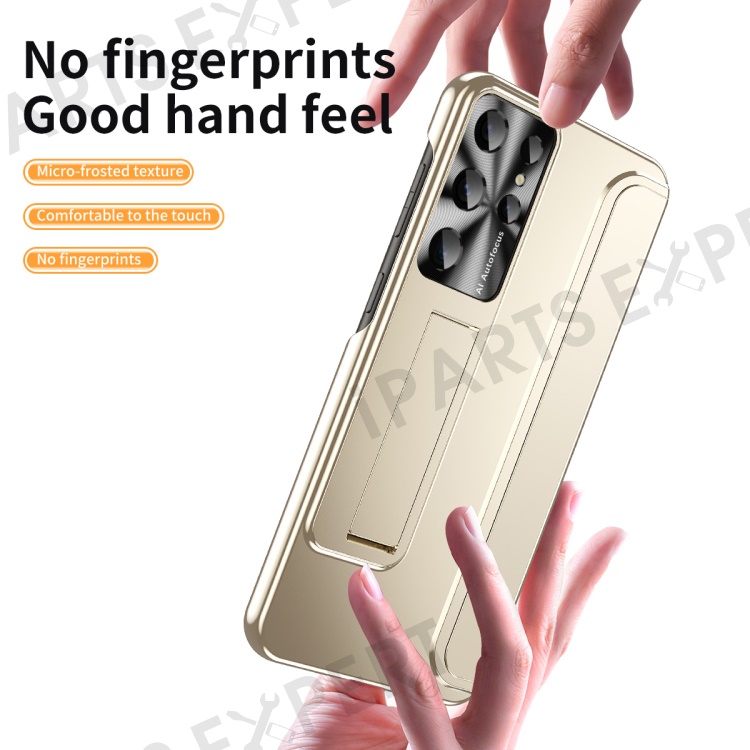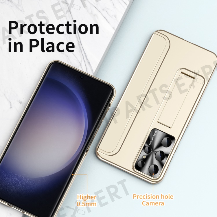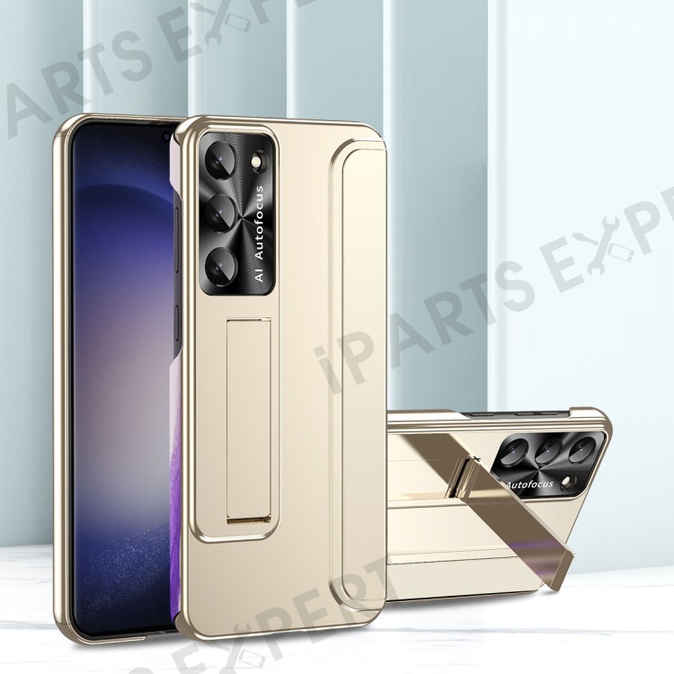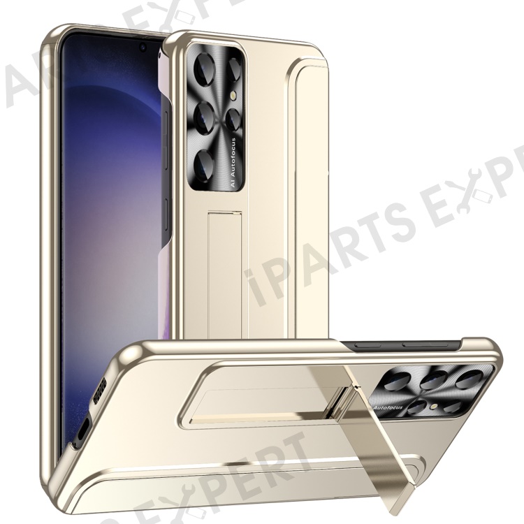 For Samsung Galaxy S23 Ultra Electroplating Phone Case Hard PC Hidden Kickstand Back Cover - Champagne Gold