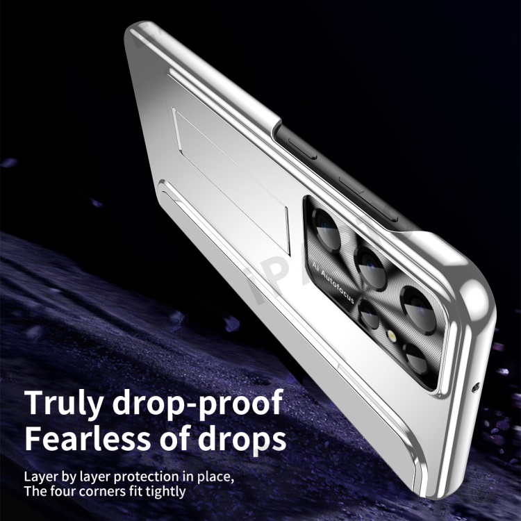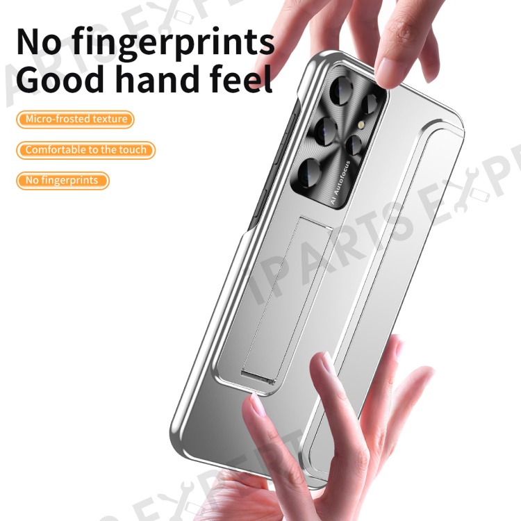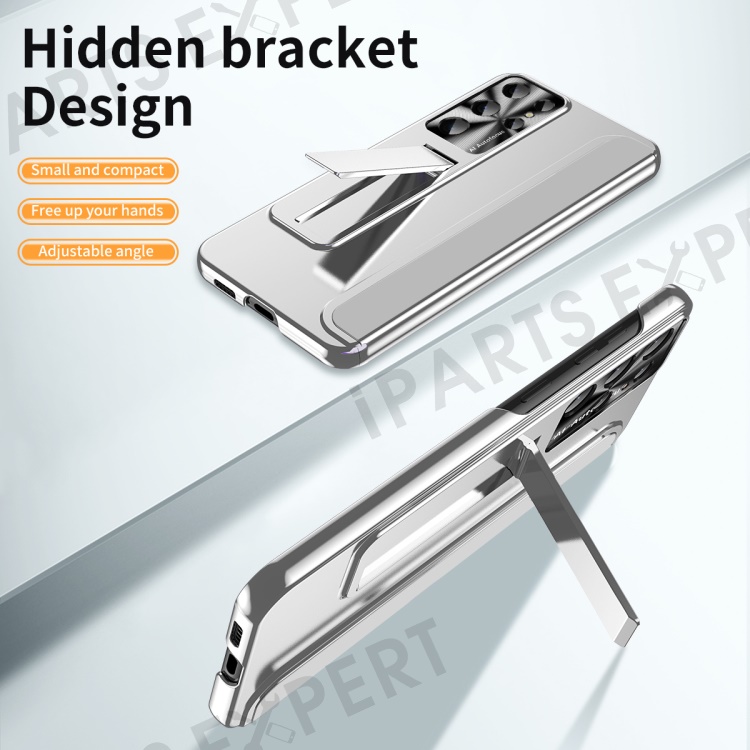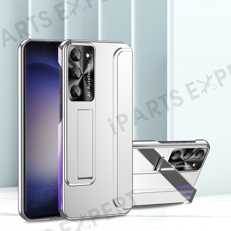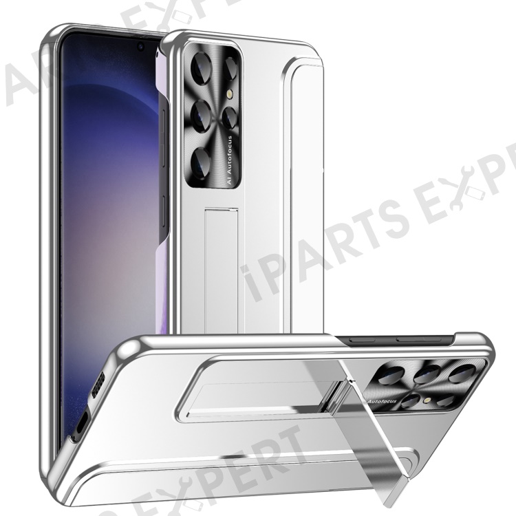 For Samsung Galaxy S23 Ultra Electroplating Phone Case Hard PC Hidden Kickstand Back Cover - Silver