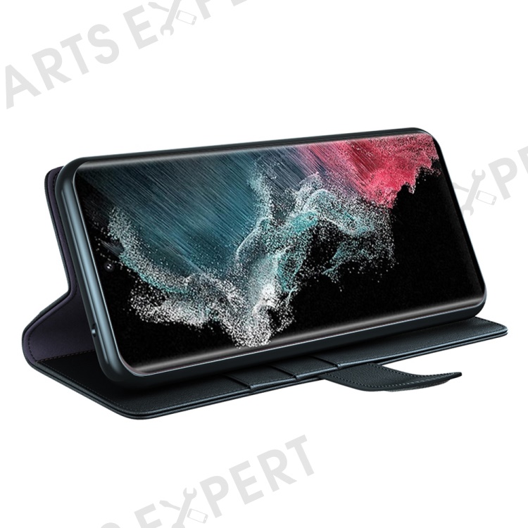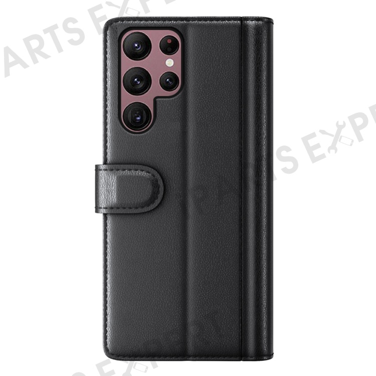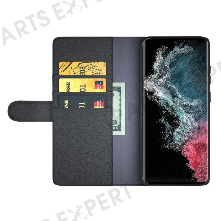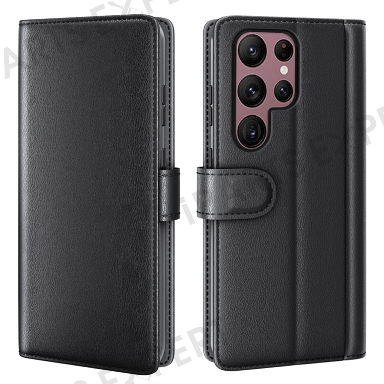 For Samsung Galaxy S23 Ultra Case Genuine Split Leather Phone Cover with Wallet Stand - Black