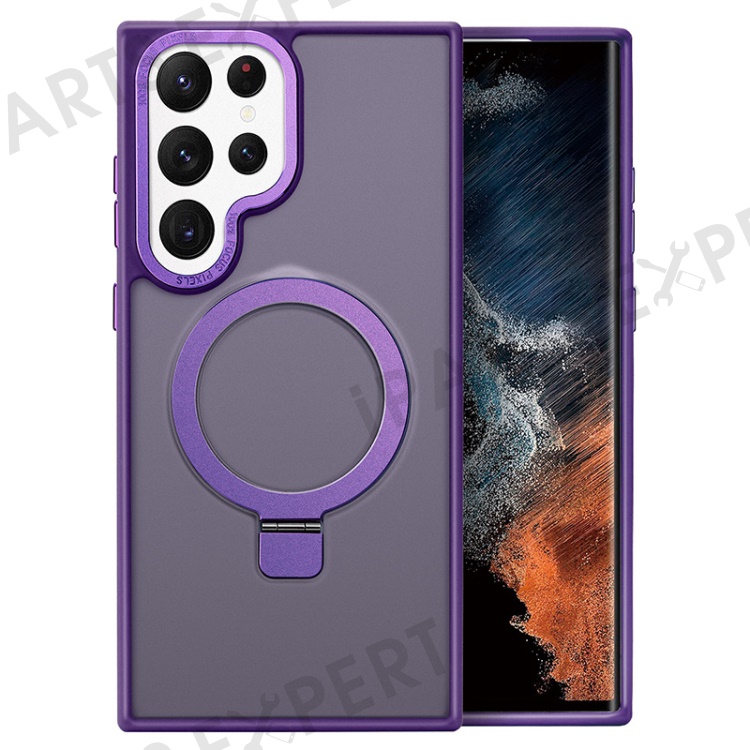 For Samsung Galaxy S23 Ultra Kickstand Case TPU+PC Matte Phone Cover Magnetic Case - Dark Purple