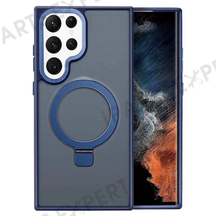 For Samsung Galaxy S23 Ultra Kickstand Case TPU+PC Matte Phone Cover Magnetic Case - Sapphire