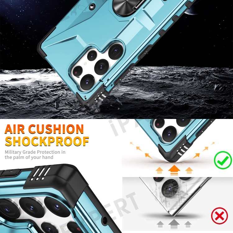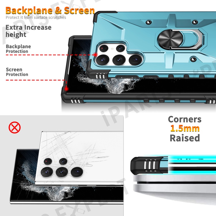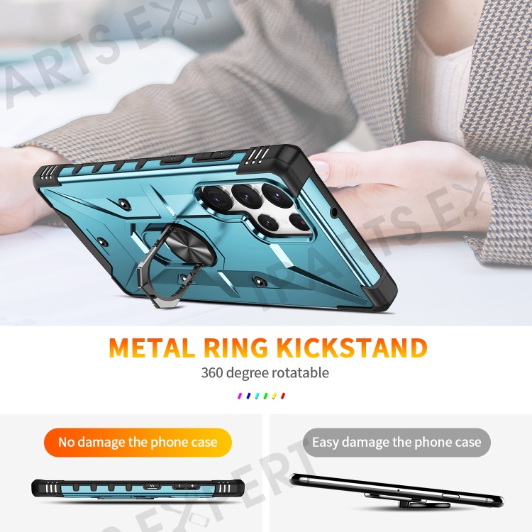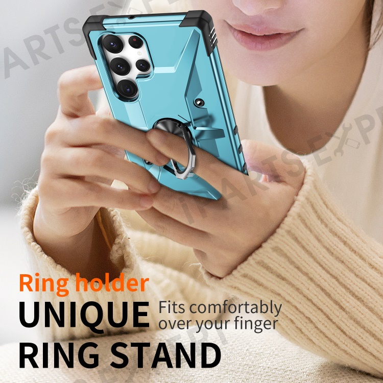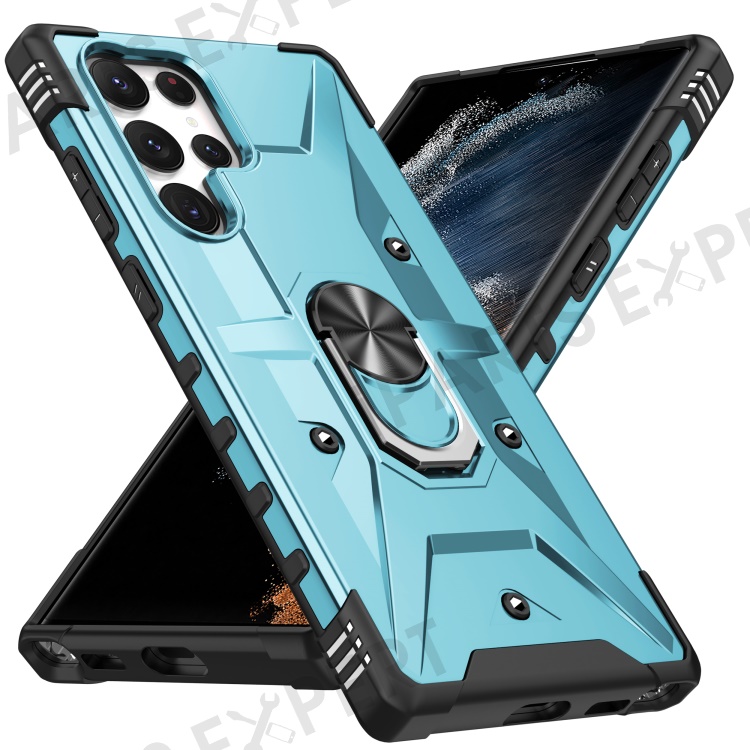 For Samsung Galaxy S23 Ultra Ring Car Mount Kickstand Phone Case Collision Resistant Hard PC Soft TPU Hybrid Military-Grade Shockproof Cover - Baby Blue