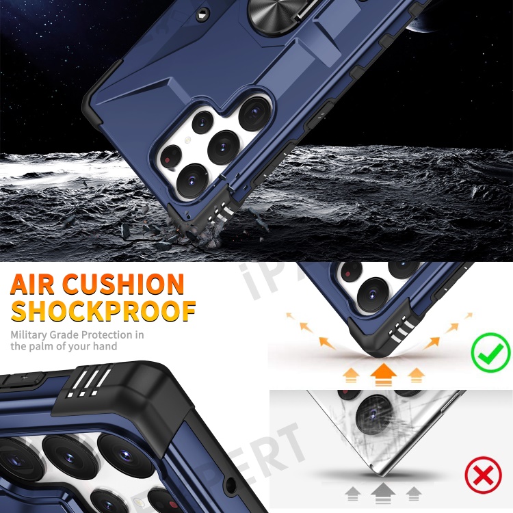 For Samsung Galaxy S23 Ultra Ring Car Mount Kickstand Phone Case Collision Resistant Hard PC Soft TPU Hybrid Military-Grade Shockproof Cover - Blue