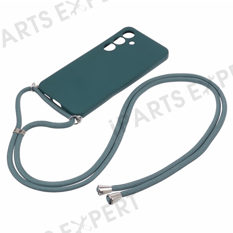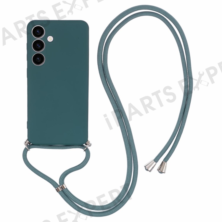 For Samsung Galaxy S24+ TPU Phone Case Rubberized Fiber Inner Lining Protective Shell with Lanyard - Army Green