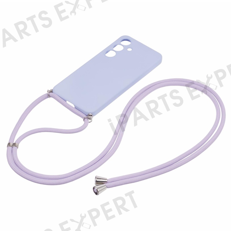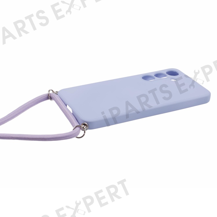 For Samsung Galaxy S24+ TPU Phone Case Rubberized Fiber Inner Lining Protective Shell with Lanyard - Light Purple