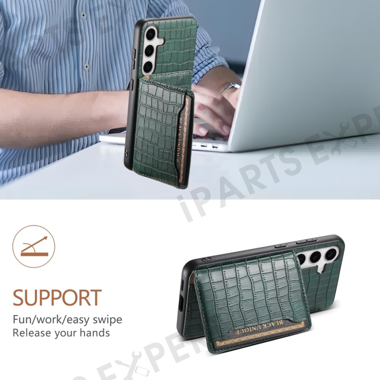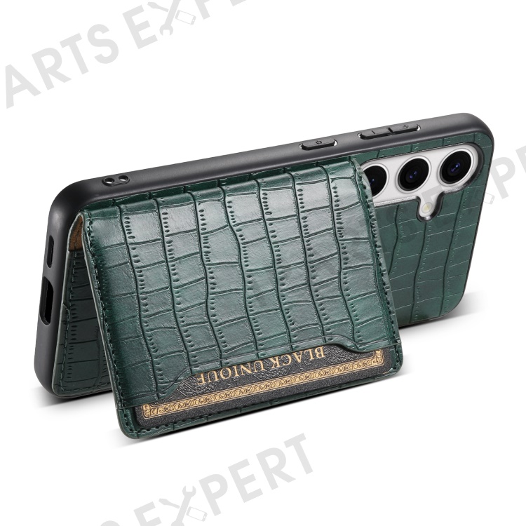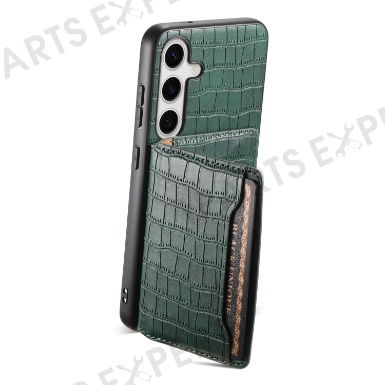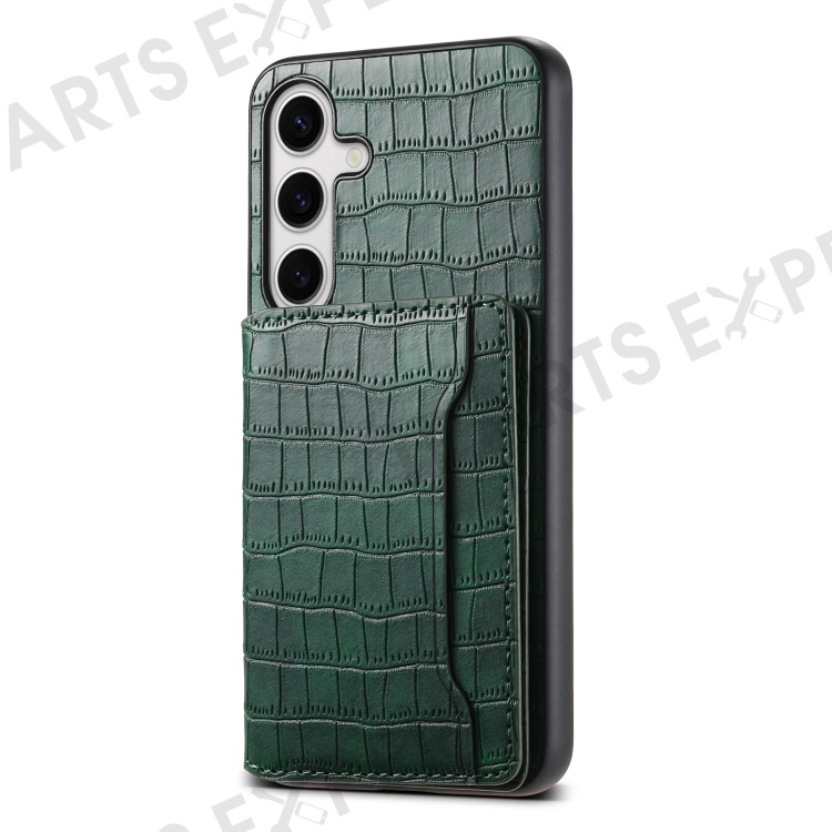 For Samsung Galaxy S24 Card Holder Case Leather+PC+TPU Phone Cover Crocodile Texture - Green
