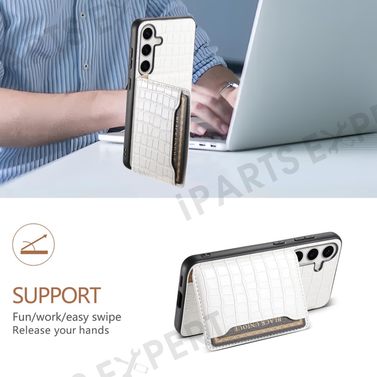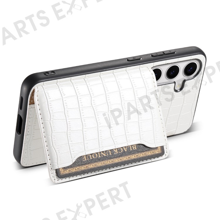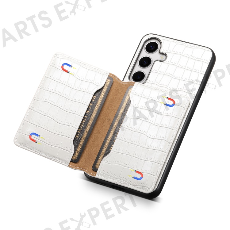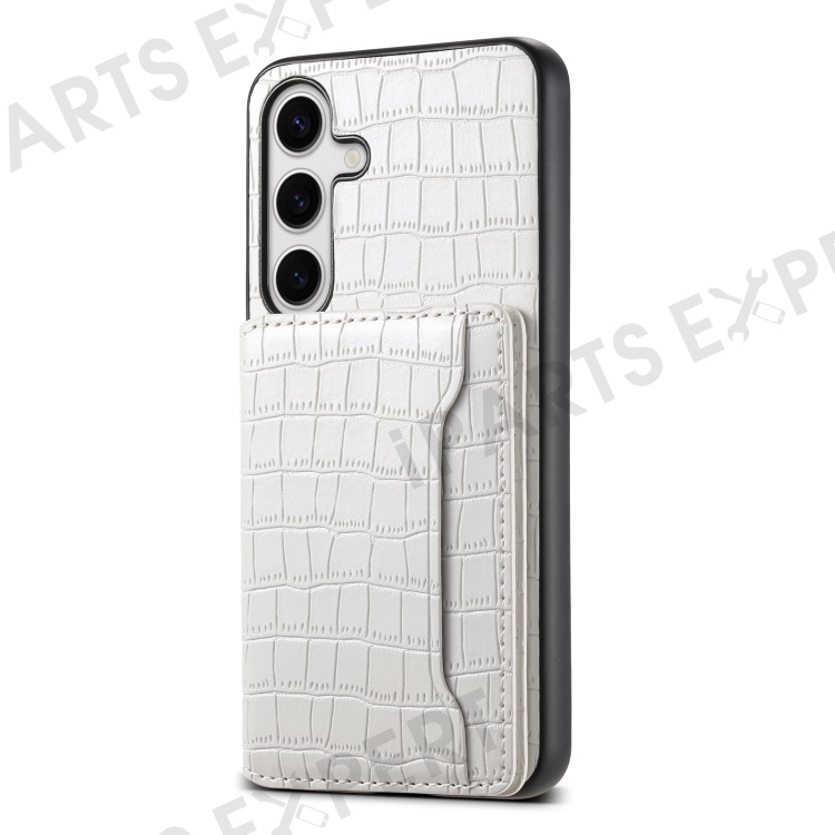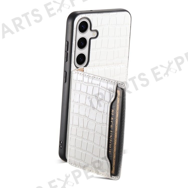 For Samsung Galaxy S24 Card Holder Case Leather+PC+TPU Phone Cover Crocodile Texture - White