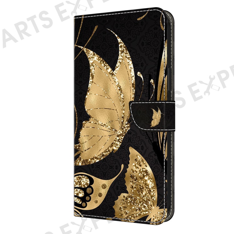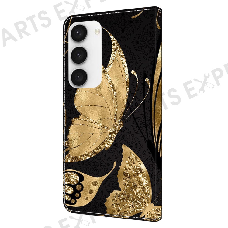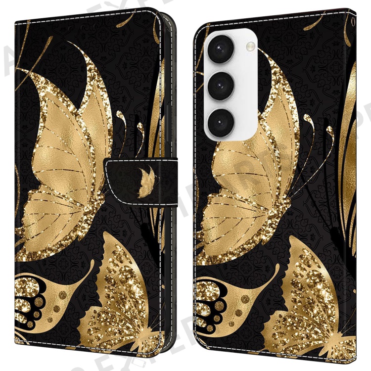 For Samsung Galaxy S24+ Case Shockproof PU Leather 3D Pattern Phone Wallet Cover - Golden Butterfly