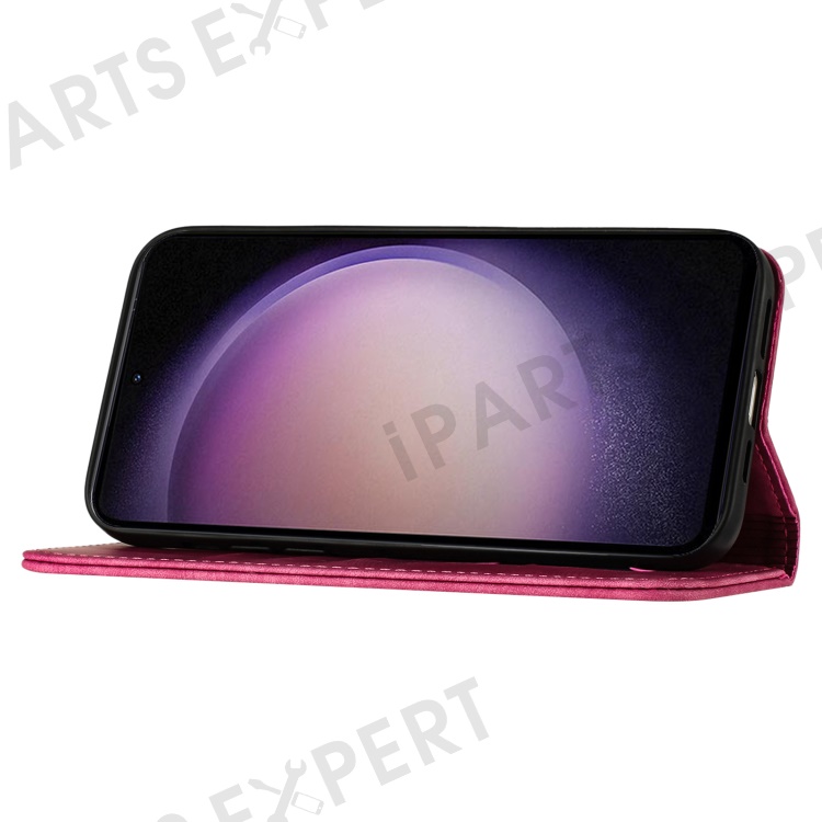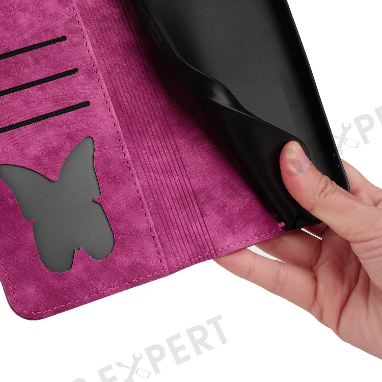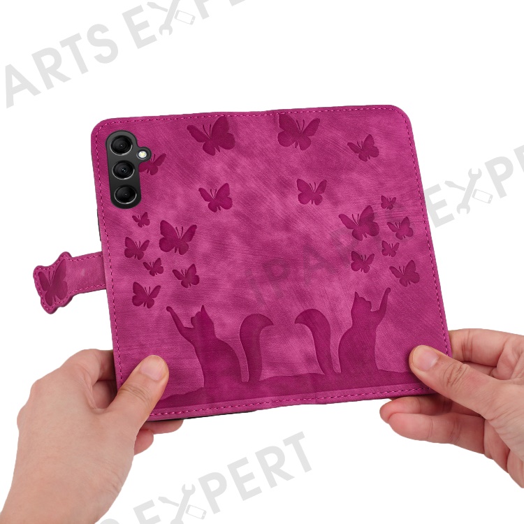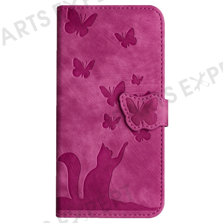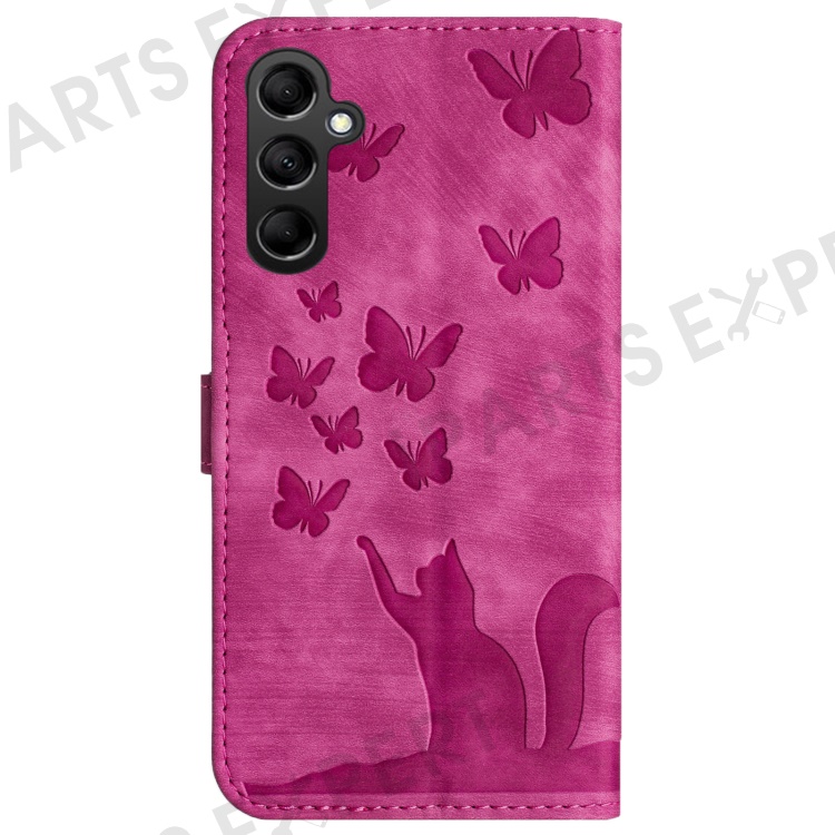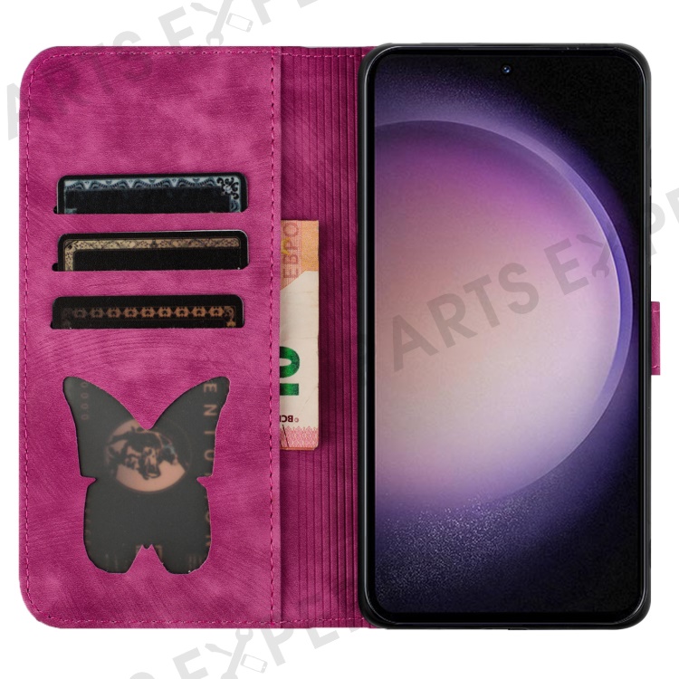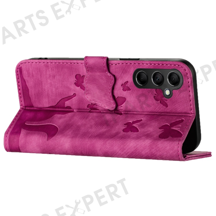 For Samsung Galaxy S25+ / S24+ Case Butterfly Cat Imprint Leather Phone Cover with Wallet Stand - Rose