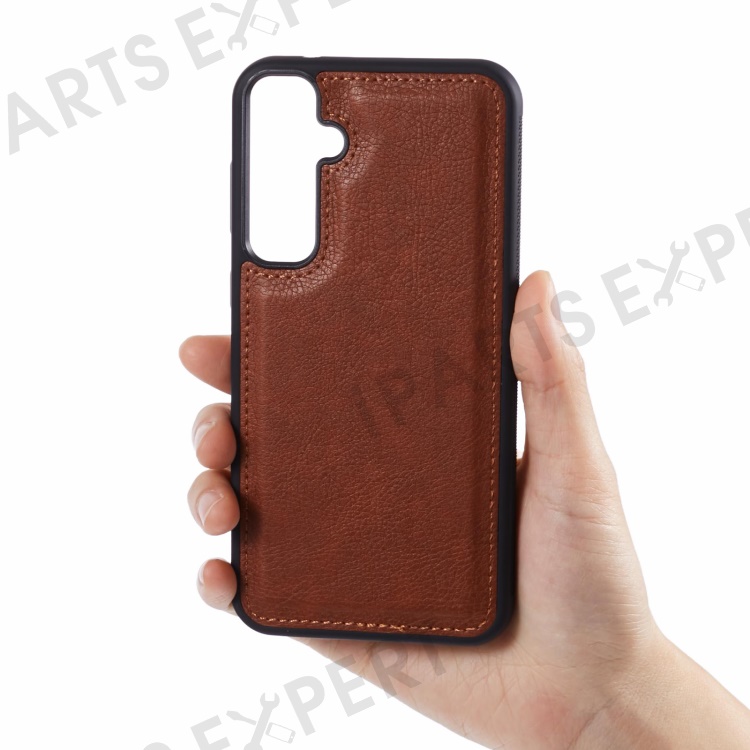 For Samsung Galaxy S24 Case Calf Texture Leather+TPU Back Phone Cover - Brown