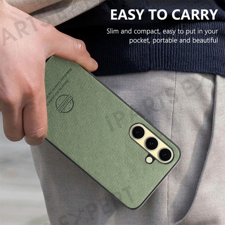 For Samsung Galaxy S24+ Case Cloth Texture Leather+PC+TPU Anti-Drop Phone Cover - Green